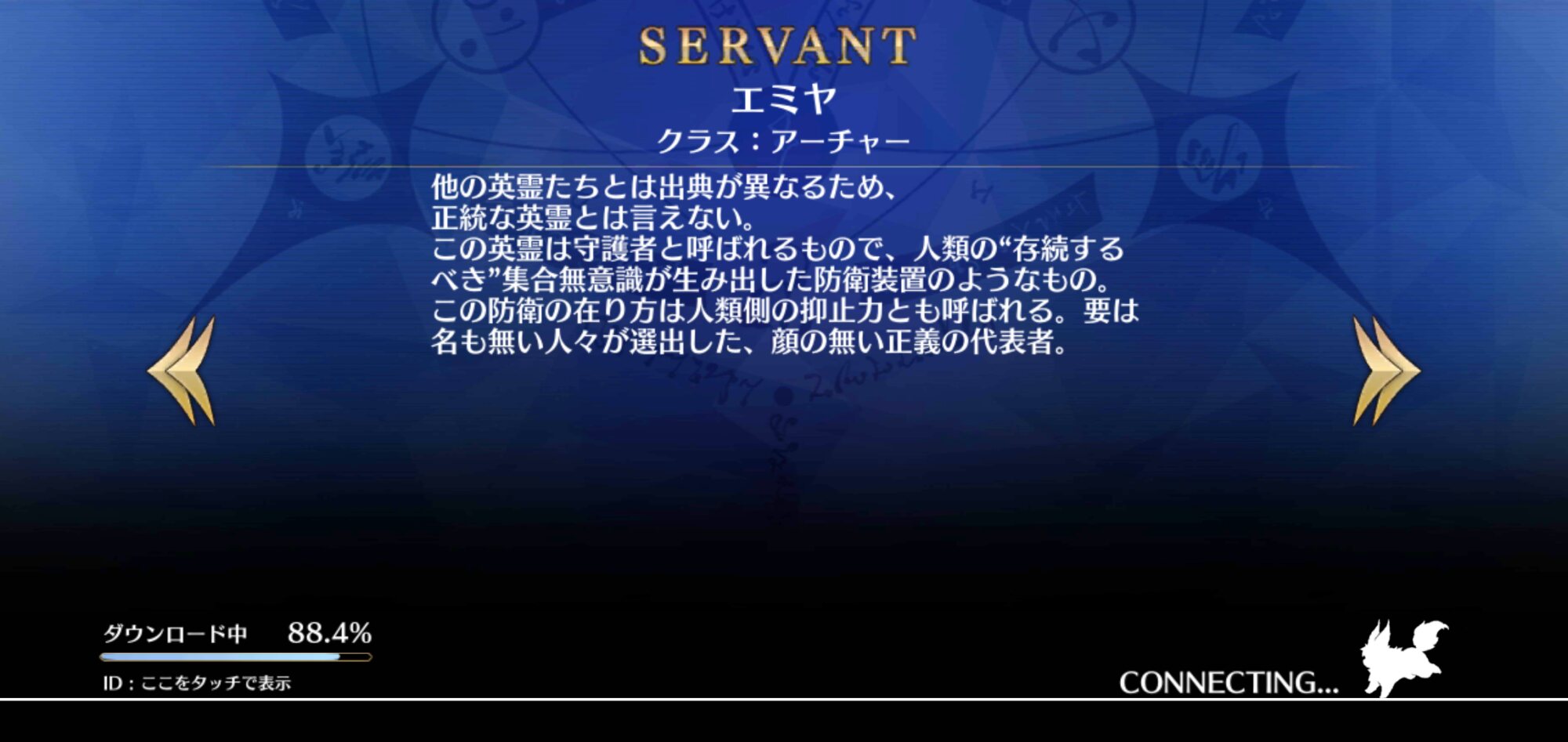 ちなみにこの画面、タップかフリップで違うサーヴァントに切り替わるわけだがタップかフリップかで音が違うんだ>>44