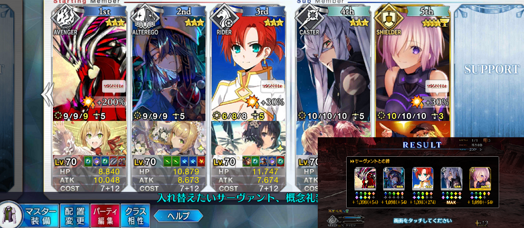 俺もこれだわ。オダチェンの控えをアーツサポ系にすればドラコーも宝具1で充分、カリスマ系まで上乗せするならカーチャンも1でいけるね>>94