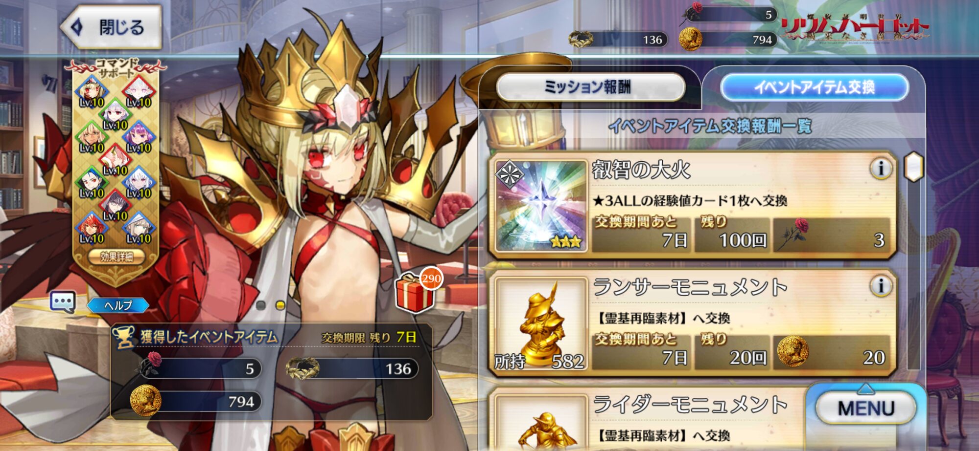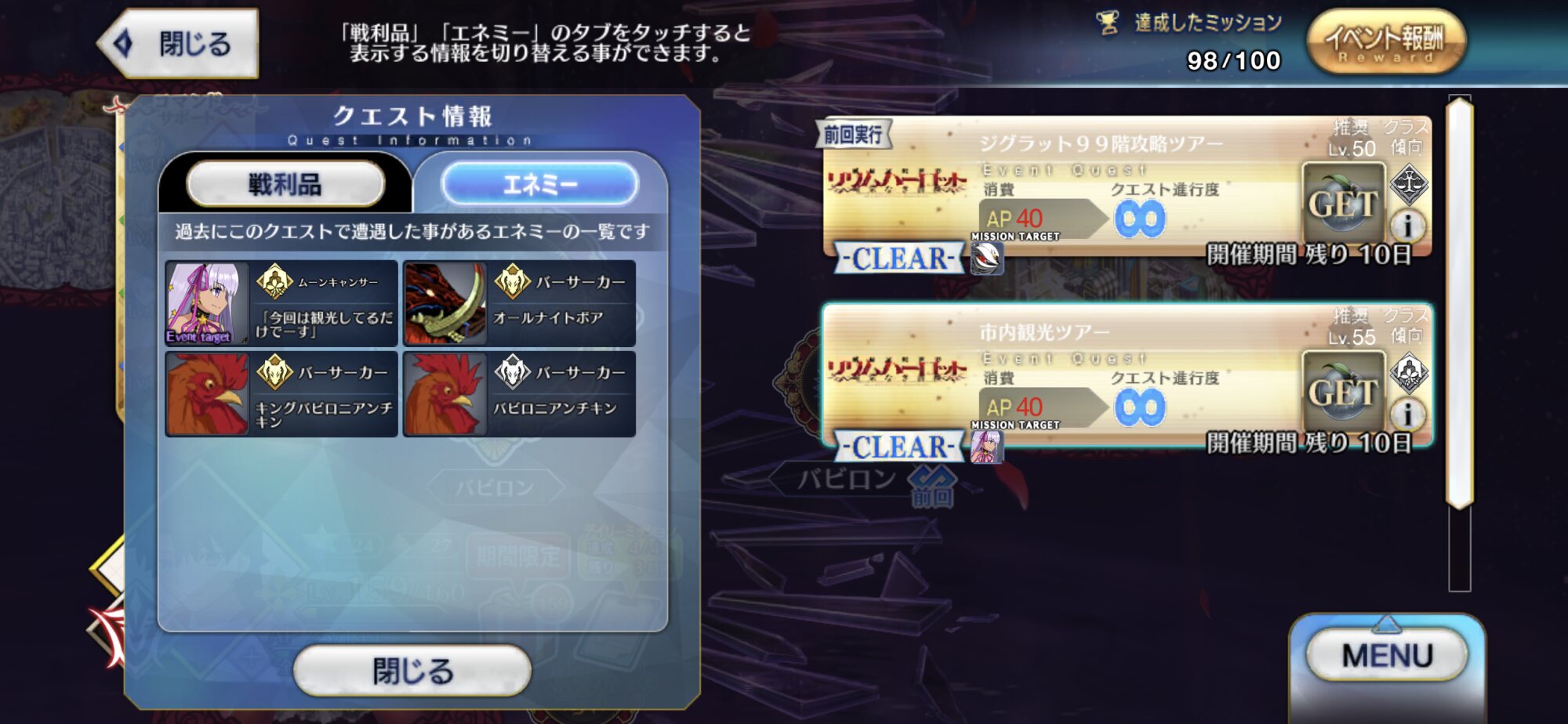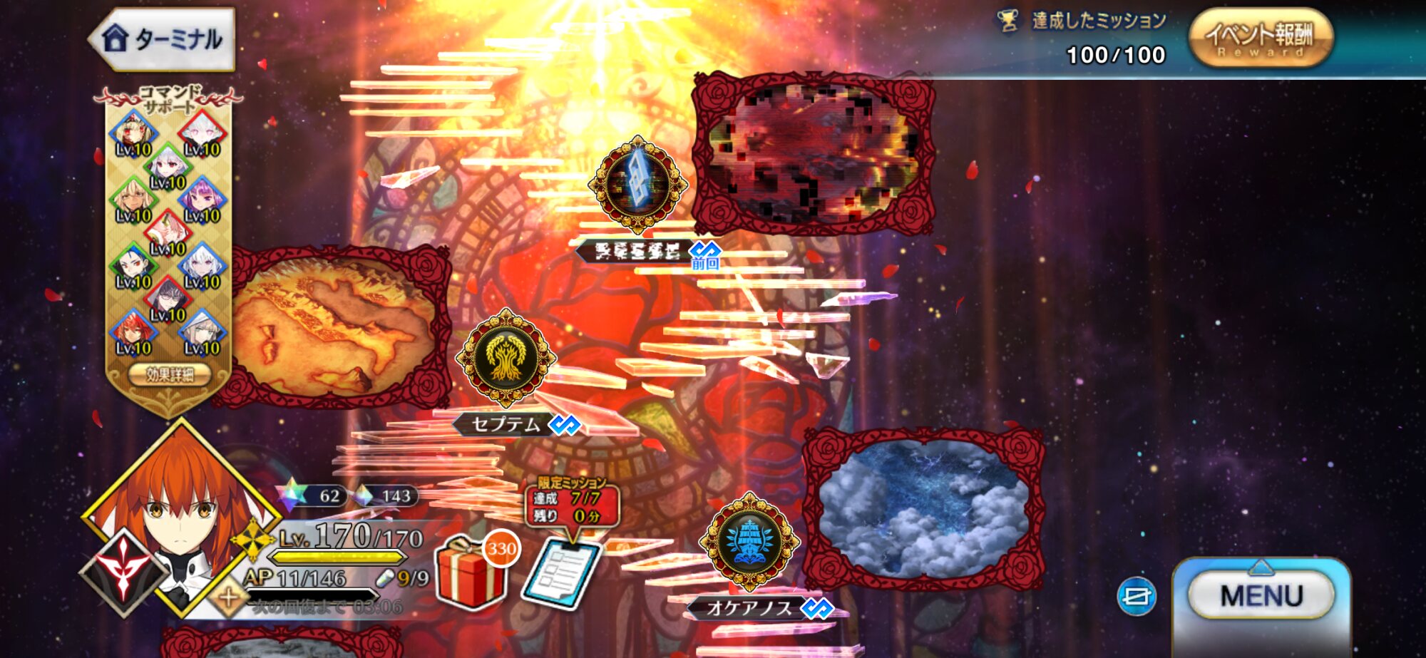 同じくクリア出来なかった…なんとか全てのミッションできてセタンタの強化素材も集めきれた
