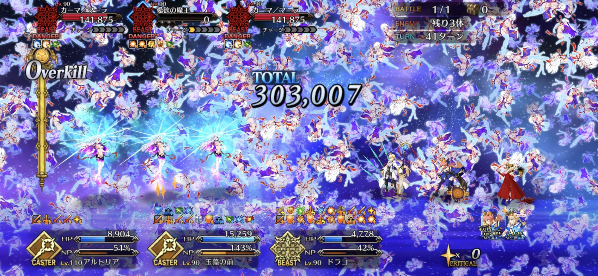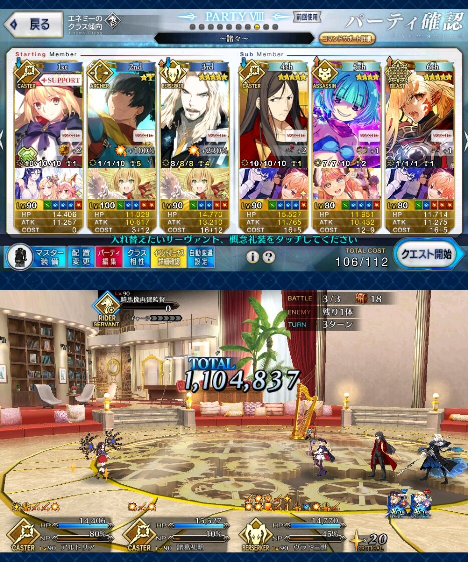 ドラコー宝具1だけど、ティアマト(宝具1)、キャストリア、レディアヴァロンで90++を3ターンでいけてるよ