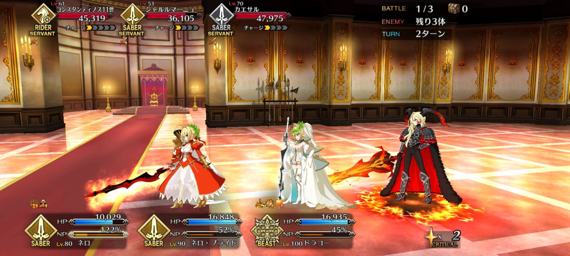 一瞬置いてから目が合ってフフッってなっちゃう今日のネロ単騎クエスト、1ターン目に「必ず」ガッツを使おう!