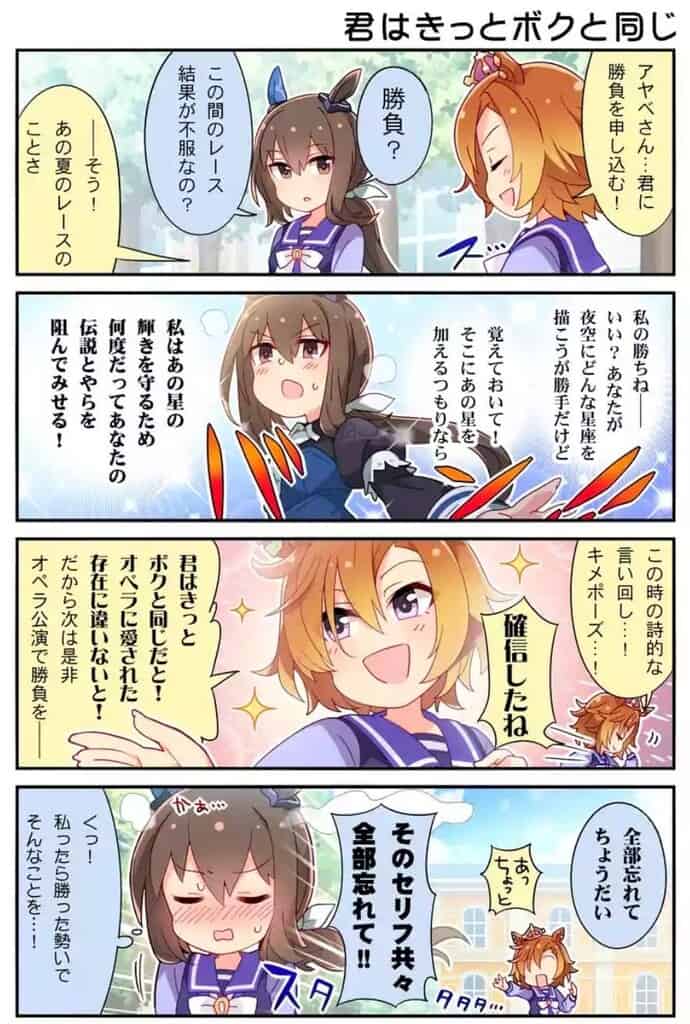 超ナルシストなのは間違いないが普段の言動は理想の自分を演じてるタイプだからねウマ娘のオペラオー。>>974