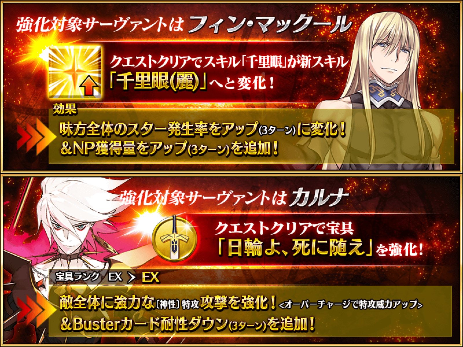 今夜強化される金枠ランサー二名はフィンとカルナさん!