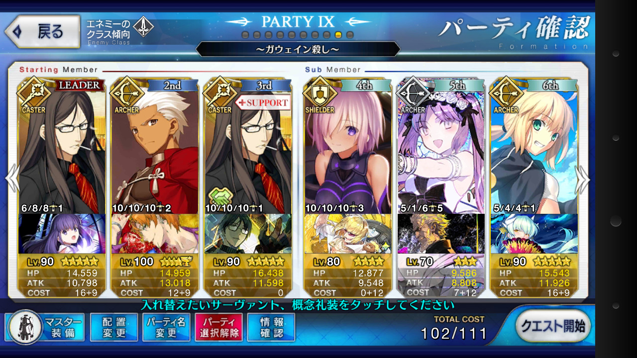 特にエウリュアレは星3で大体持ってるだろうしえ、メモリアルガウェイン6章より強くなってたの?