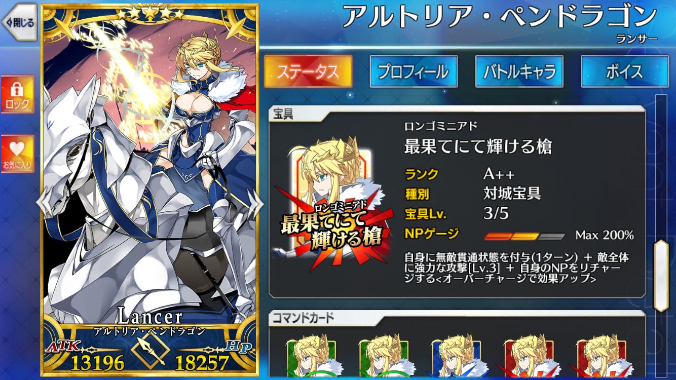フィンは・・・NP獲得量upとかかなー。宝具撃ったらかなり溜まる感じのやつ。