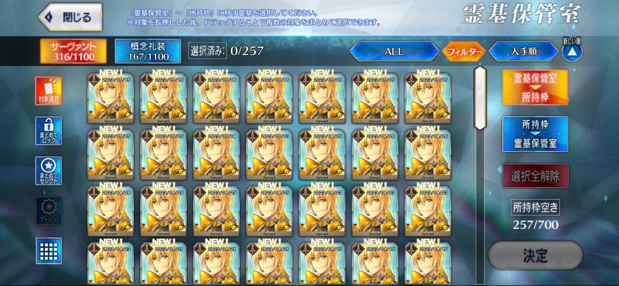 初代様、スカサハ、沖田さん、3人宝具3にするプロセスで使い切ったわ!