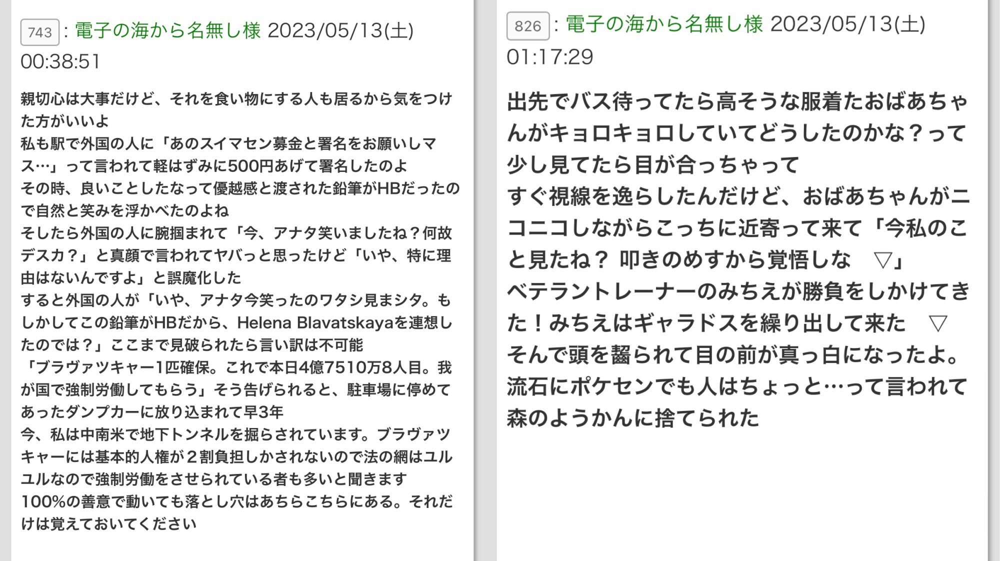 雑談スレ怪文書(いつもの)に表民が怯えておる……なむなむ