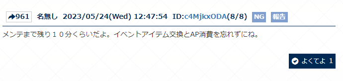R18関連話題、よくてよ無しのガチャ結果、実装から二週間以内のシナリオ及び開催期間中のイベント内容、進行度依存の報酬、最終再臨や霊衣解放の画像や話題は専用スレにてお願いします。