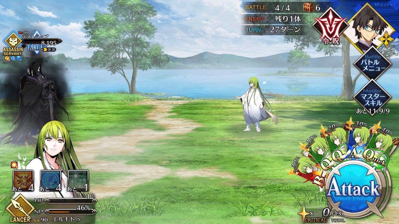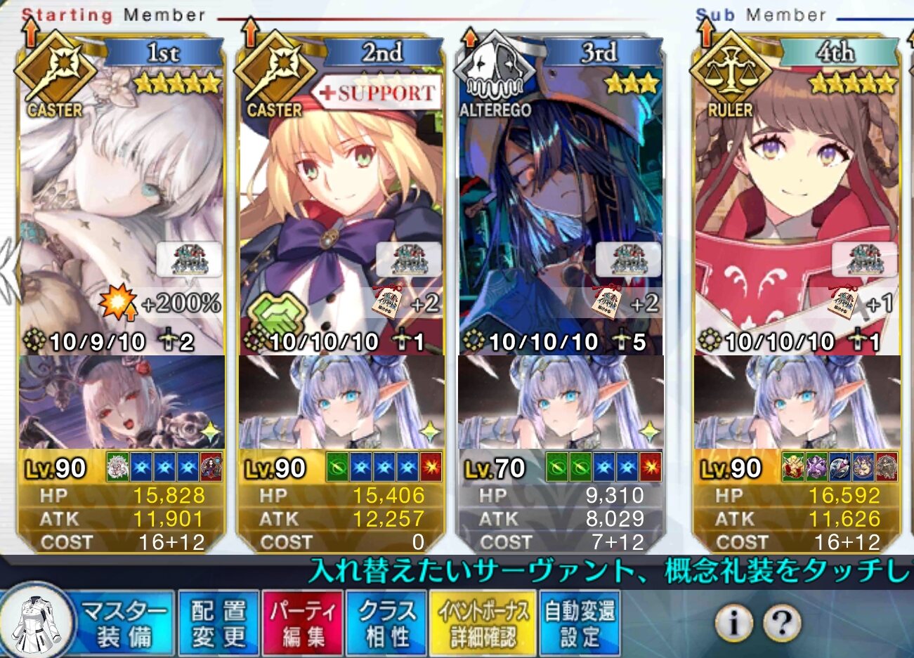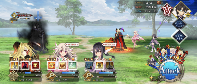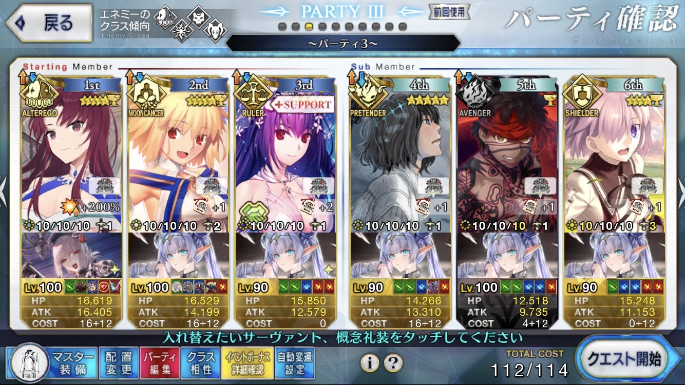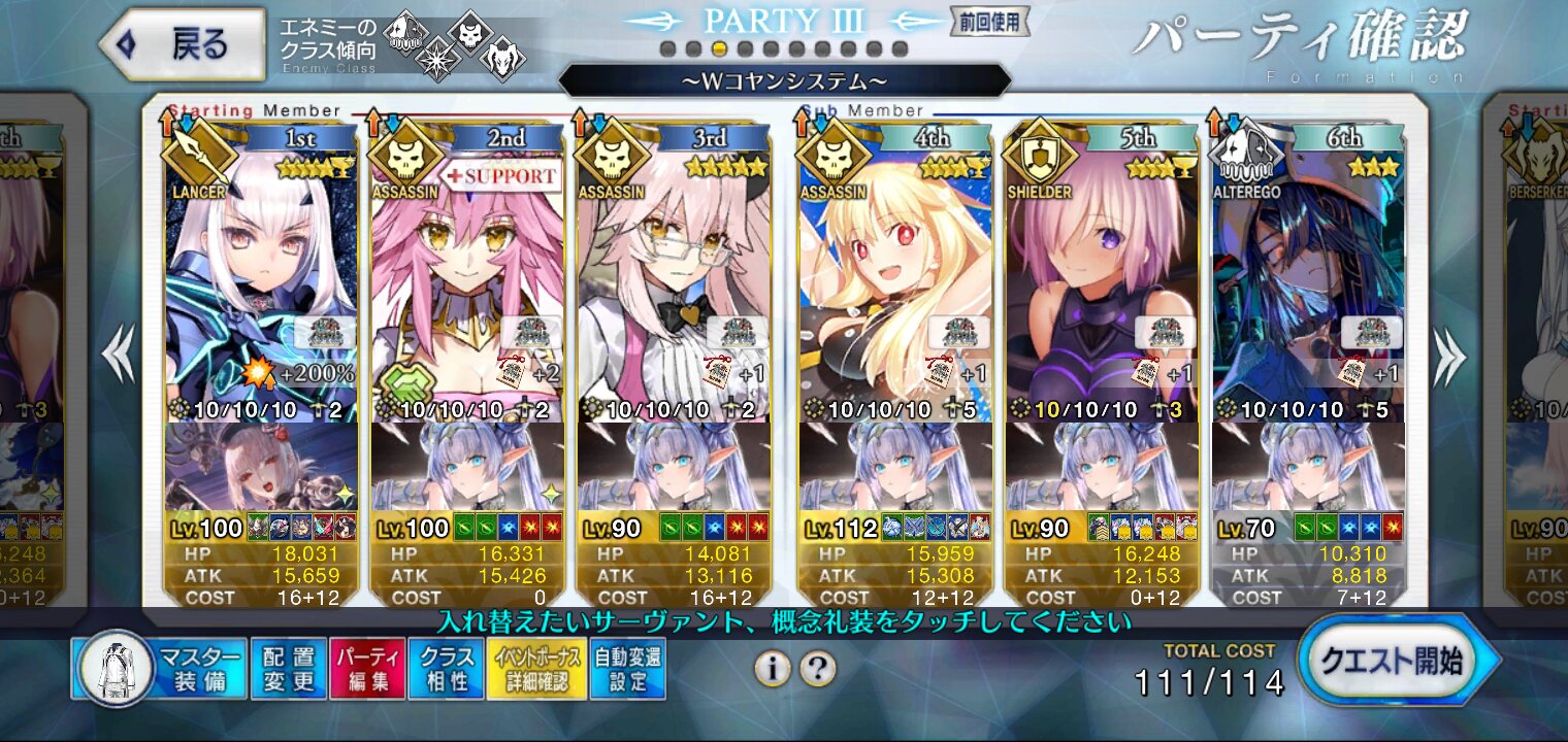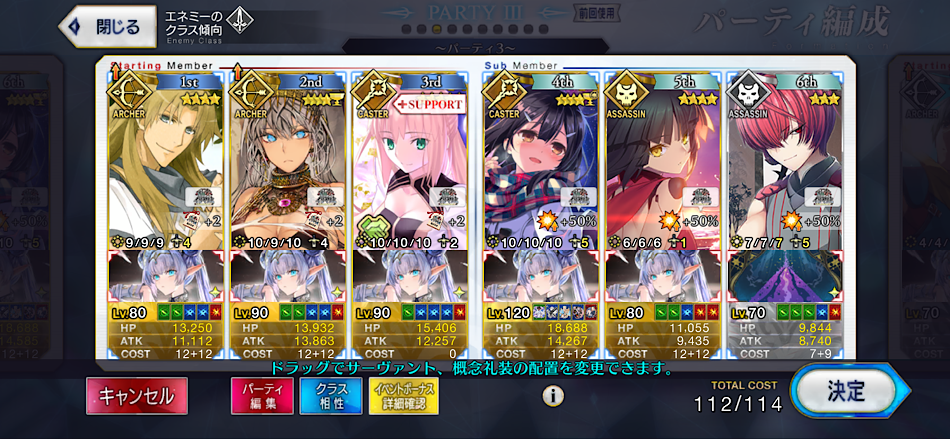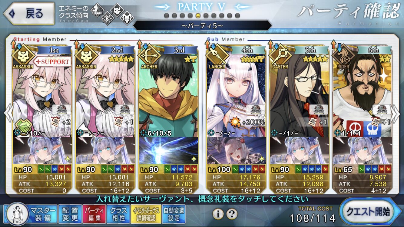 3wでちょっとだけNP足りないからマスター礼装で補助は必要90++6積みできたものの、素材が美味しくないので90+行きます。