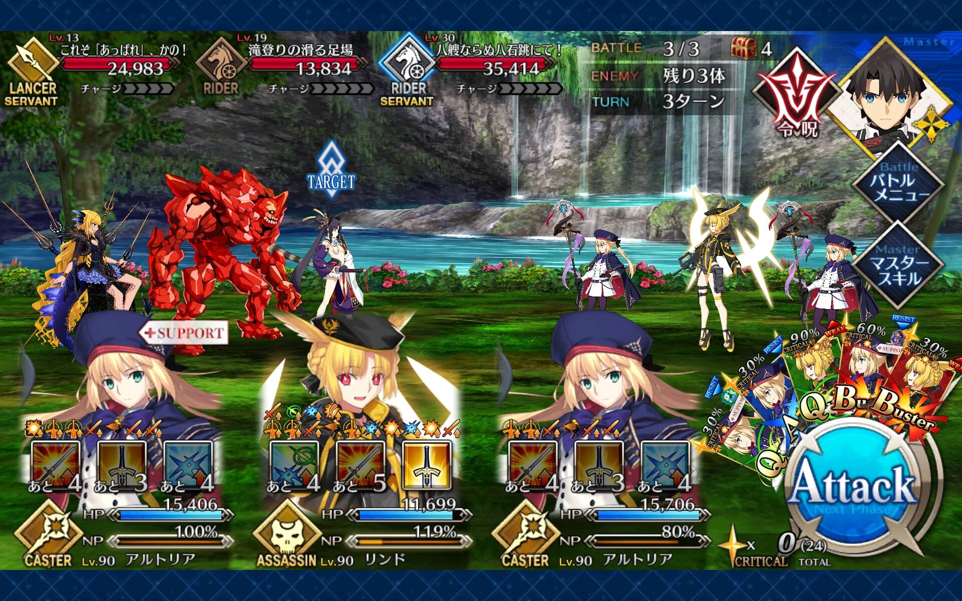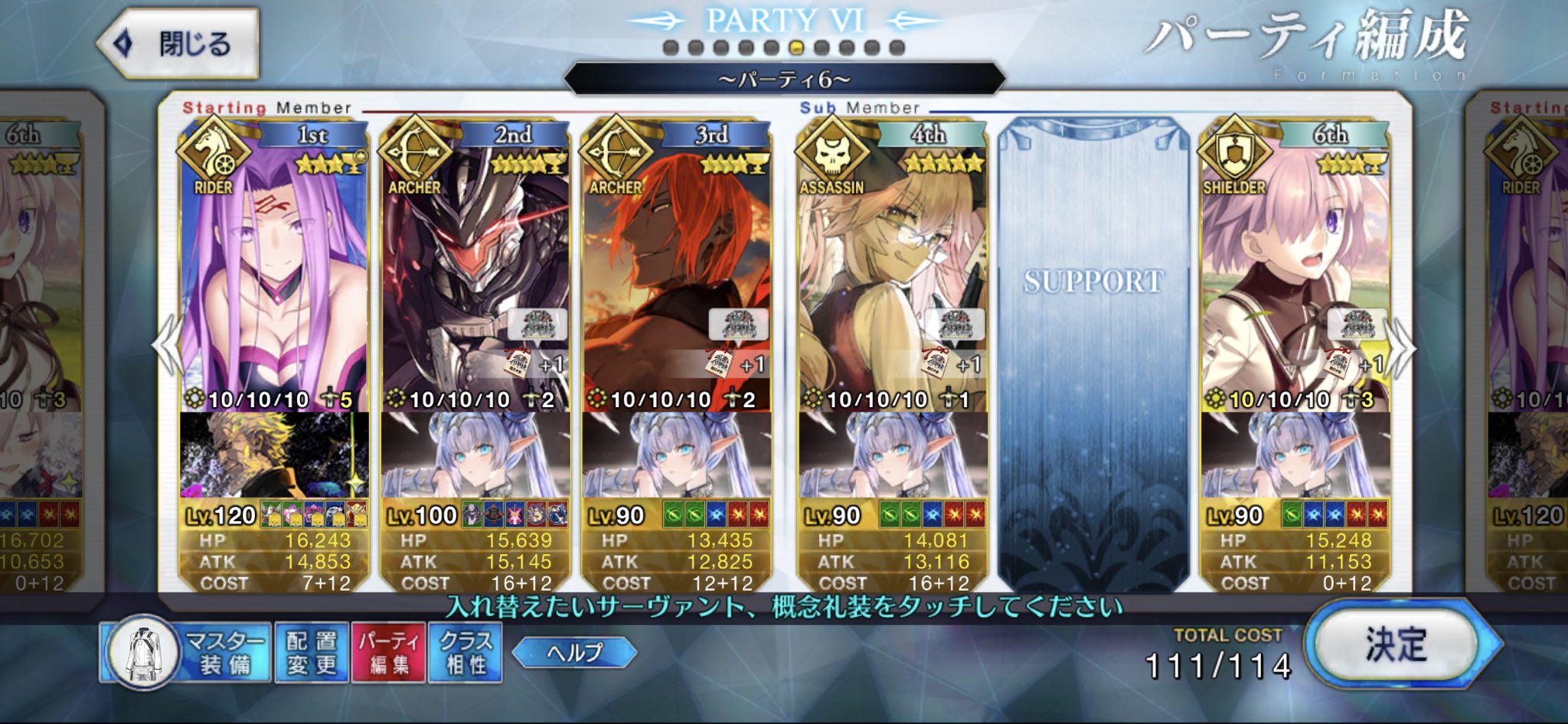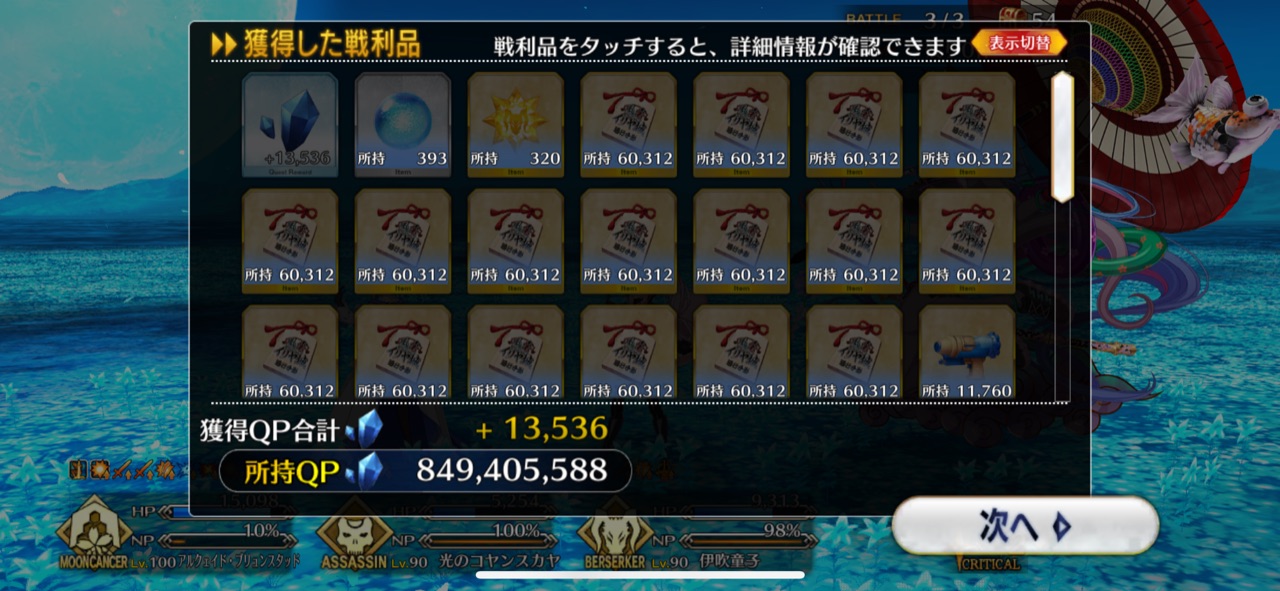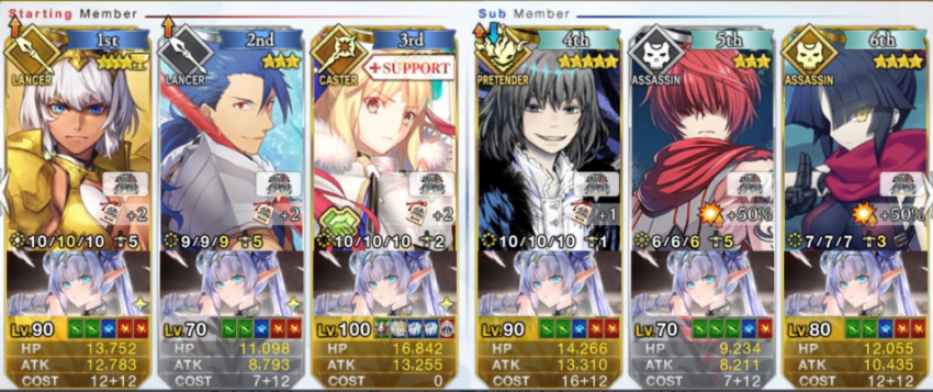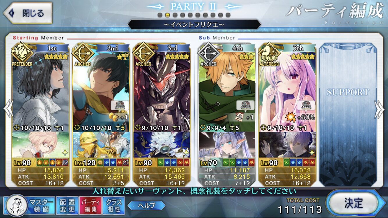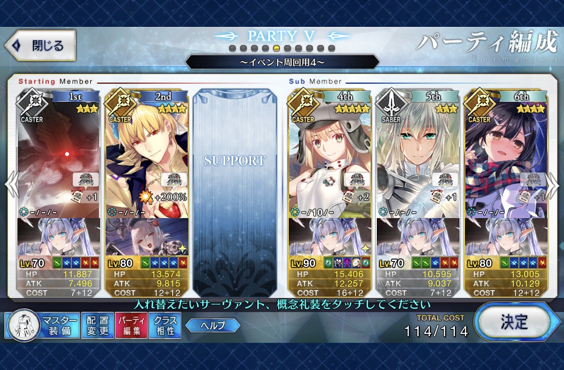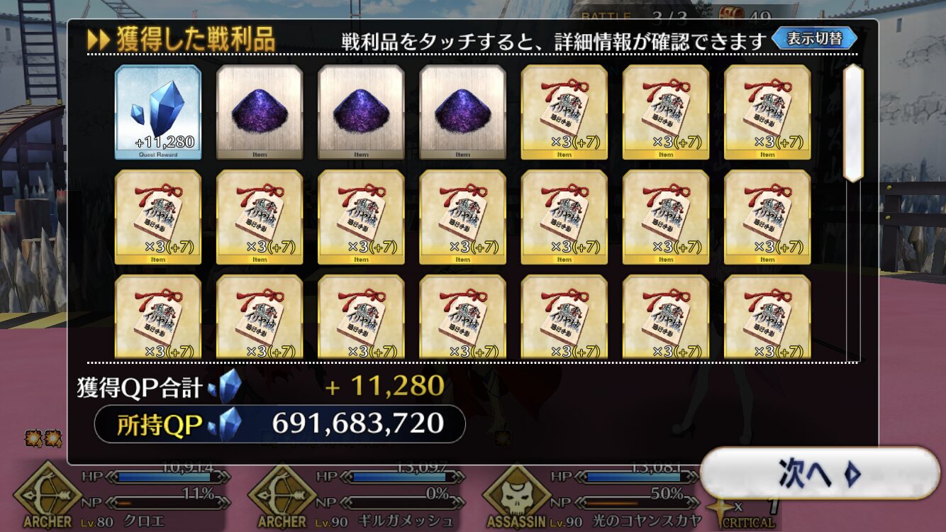 3wでちょっとだけNP足りないからマスター礼装で補助は必要90++6積みできたものの、素材が美味しくないので90+行きます。