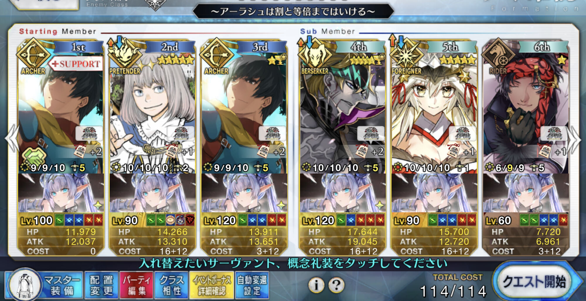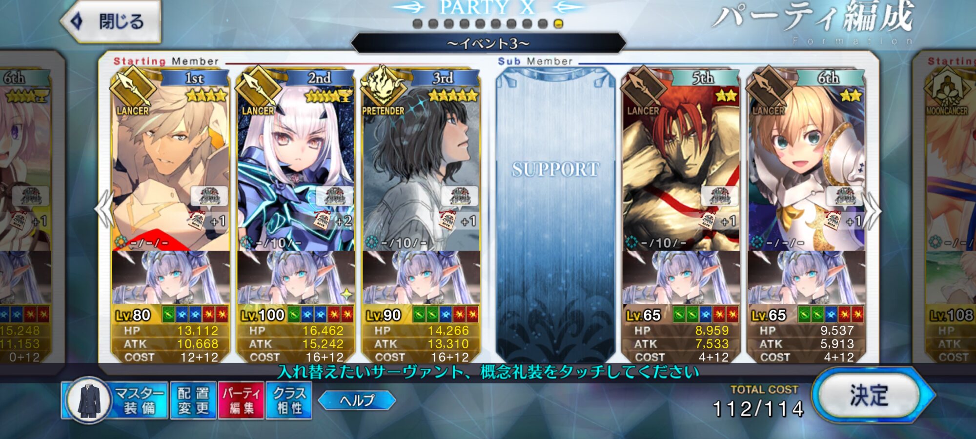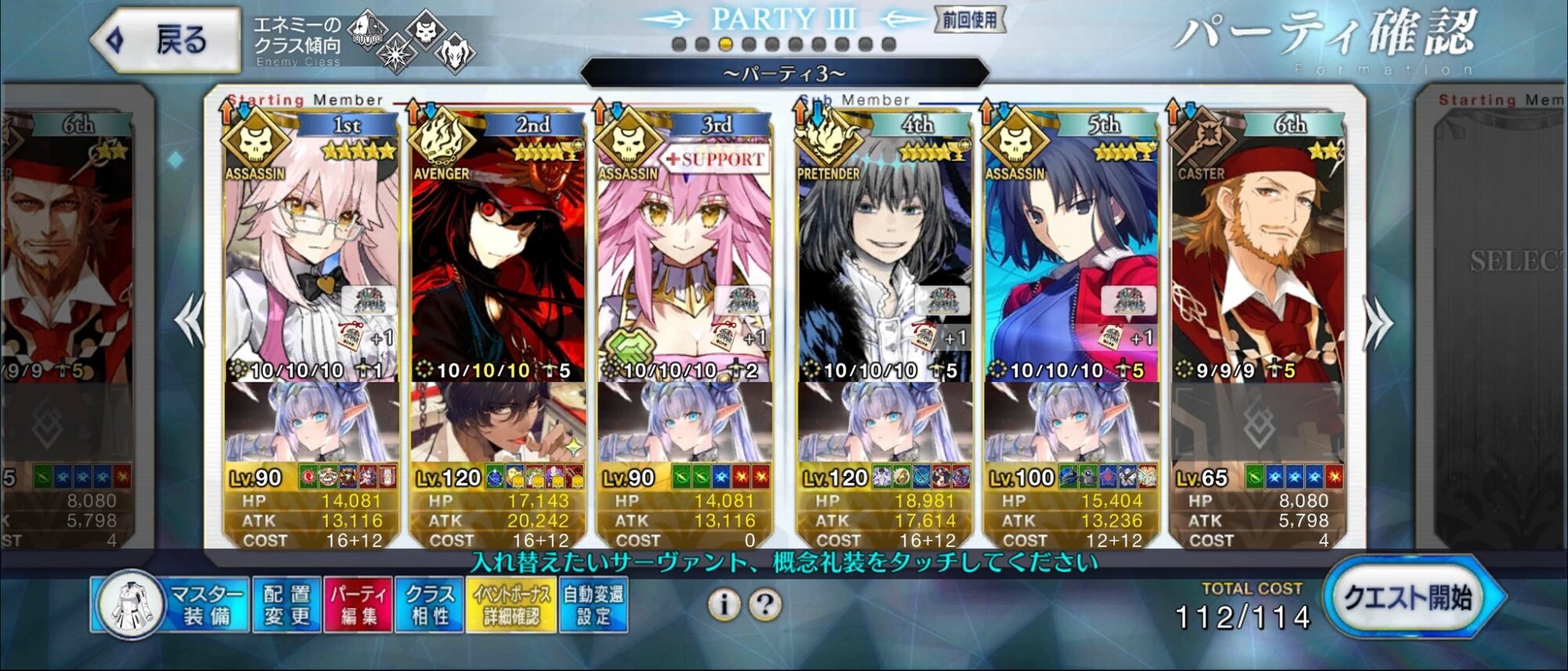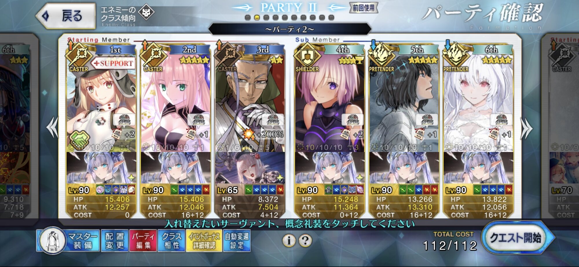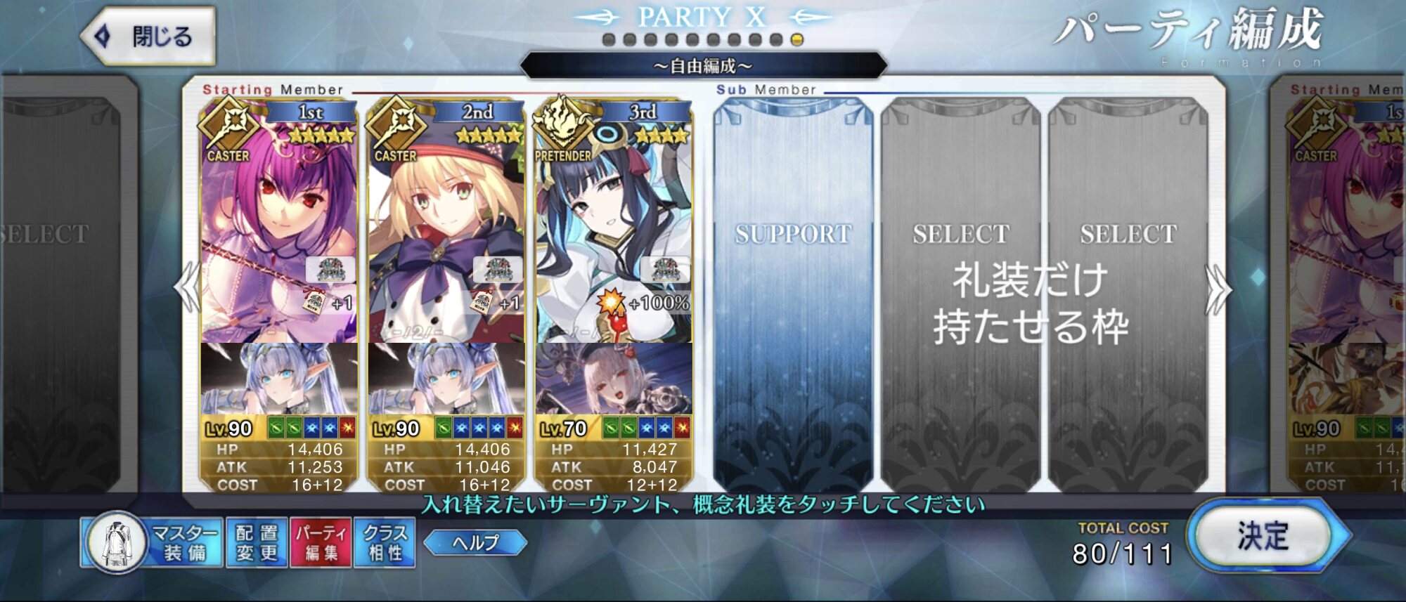 3wでちょっとだけNP足りないからマスター礼装で補助は必要90++6積みできたものの、素材が美味しくないので90+行きます。