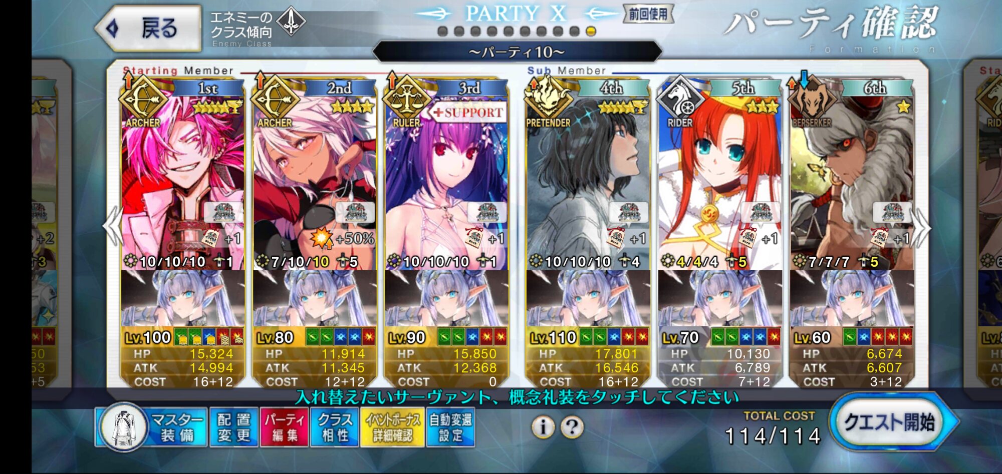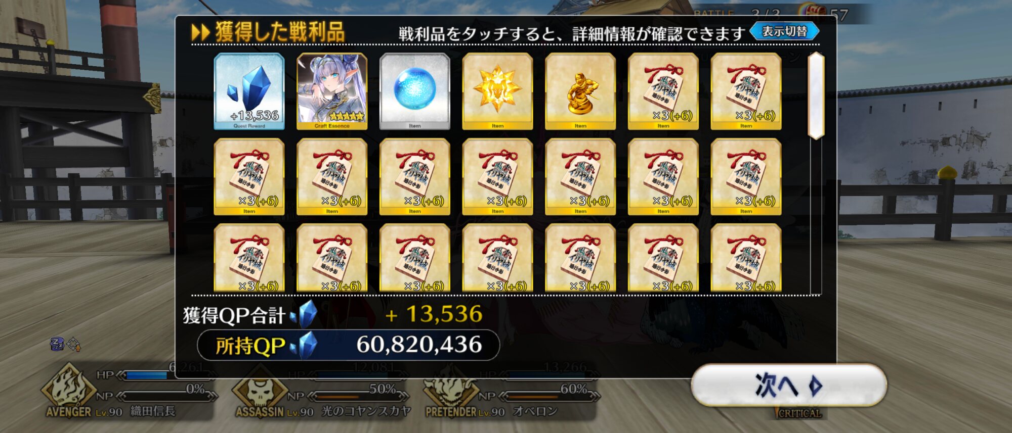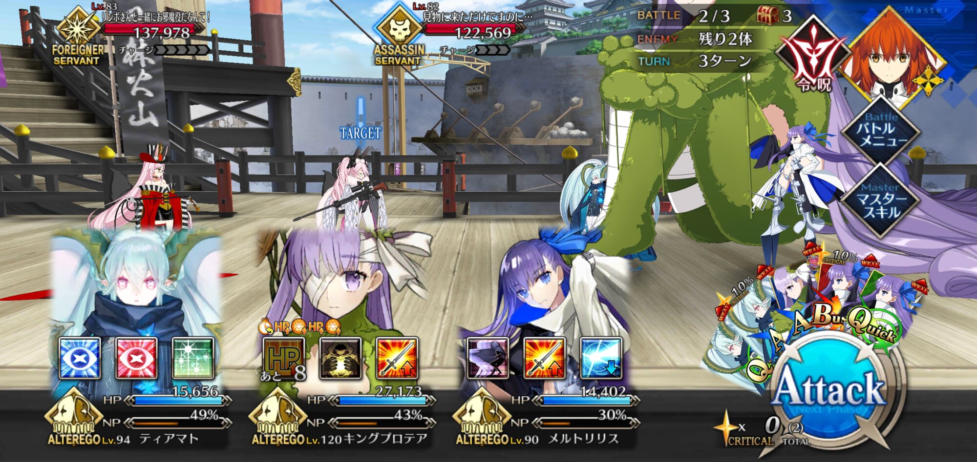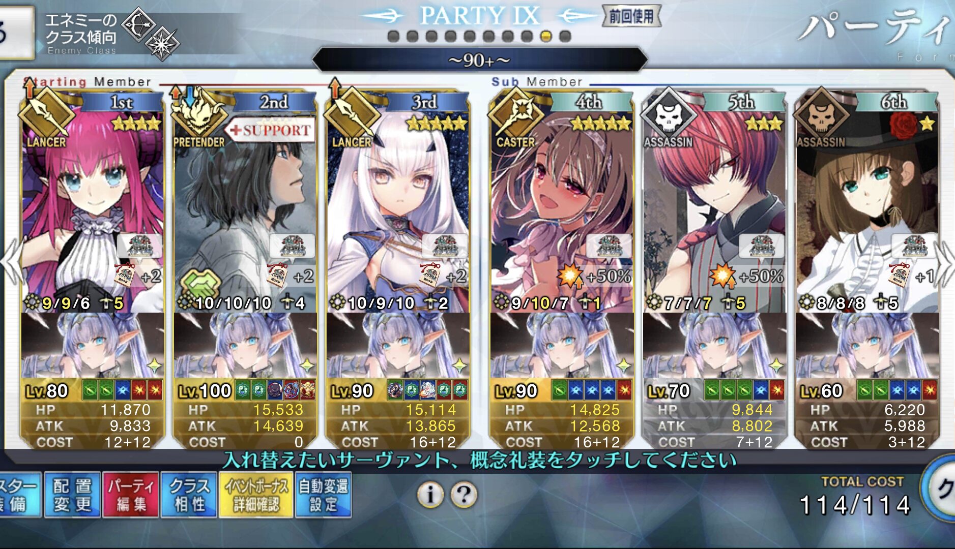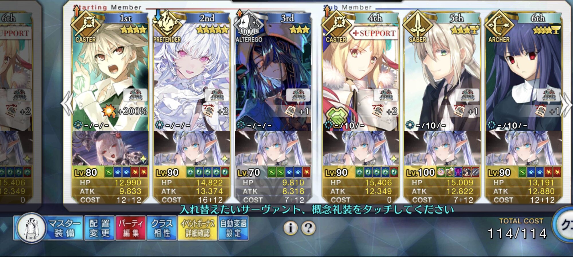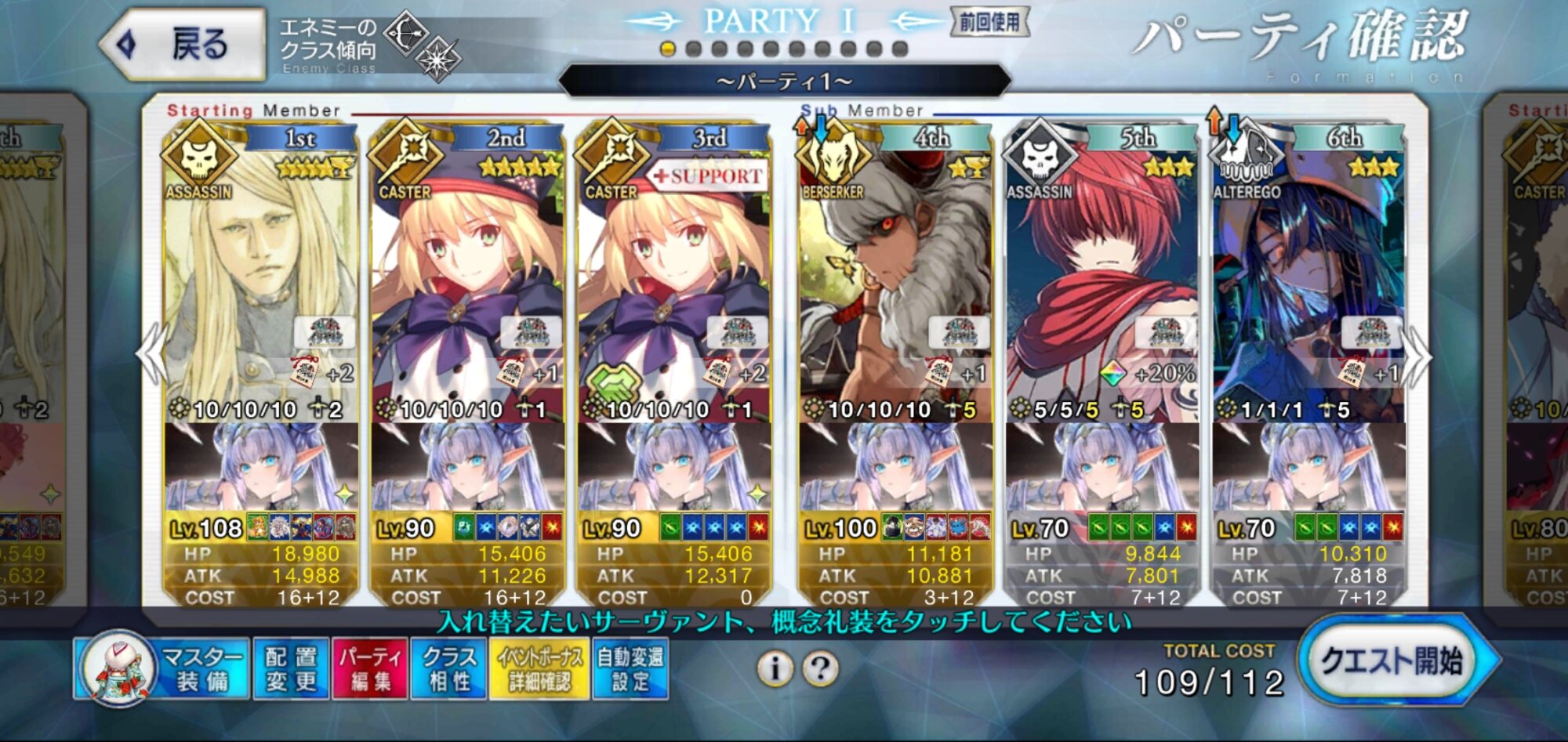 3wでちょっとだけNP足りないからマスター礼装で補助は必要90++6積みできたものの、素材が美味しくないので90+行きます。