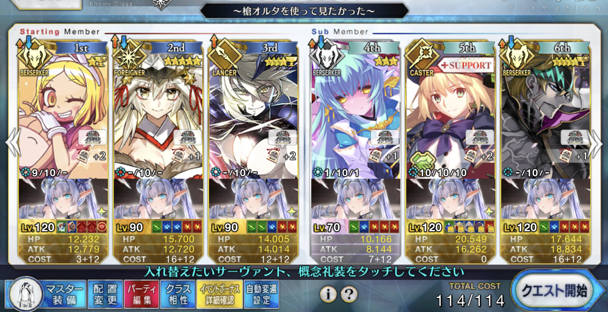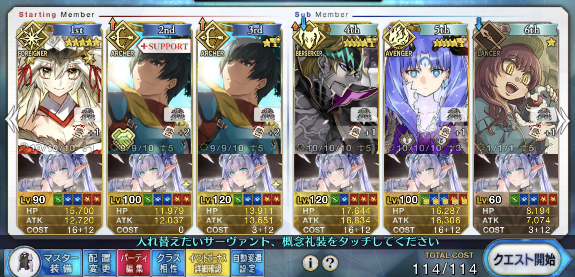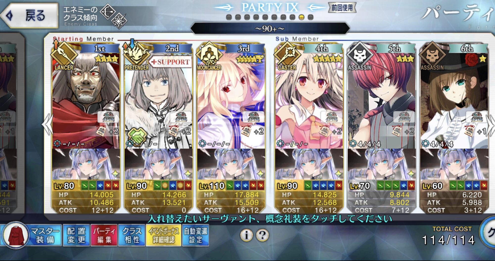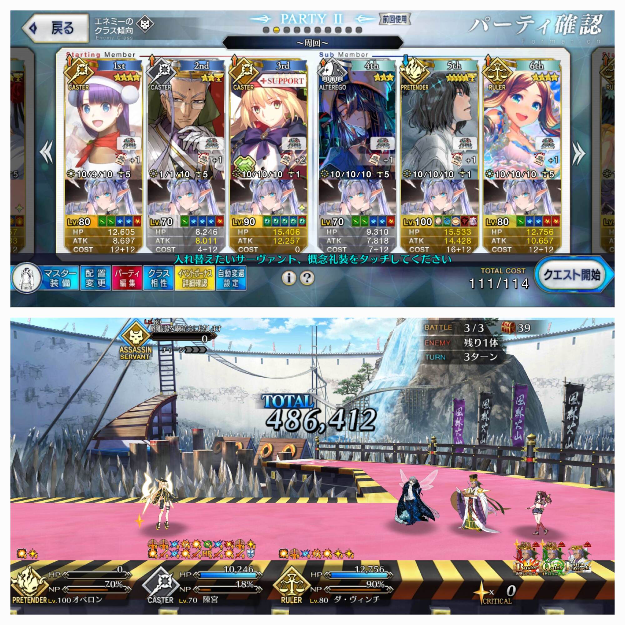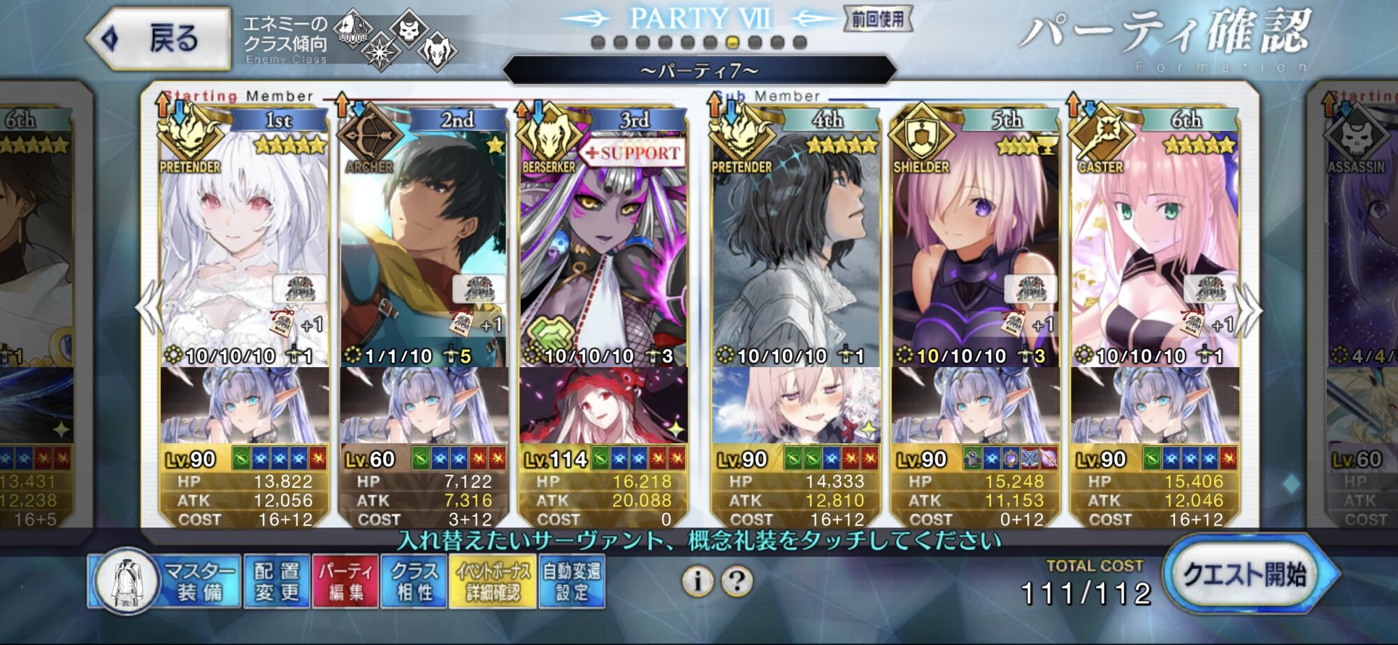 3wでちょっとだけNP足りないからマスター礼装で補助は必要90++6積みできたものの、素材が美味しくないので90+行きます。