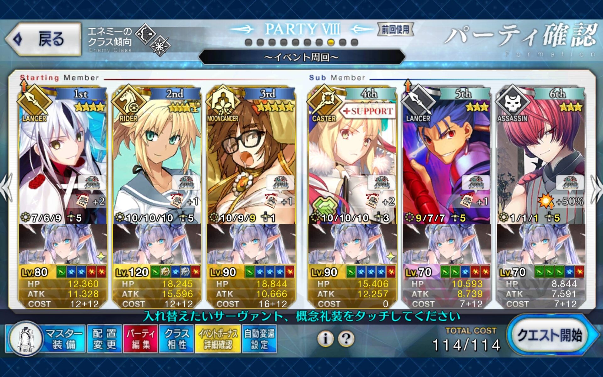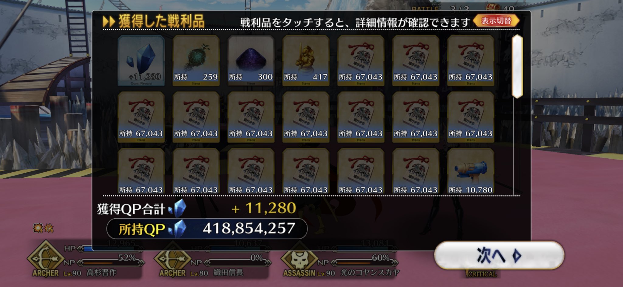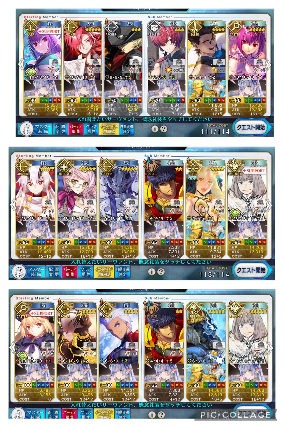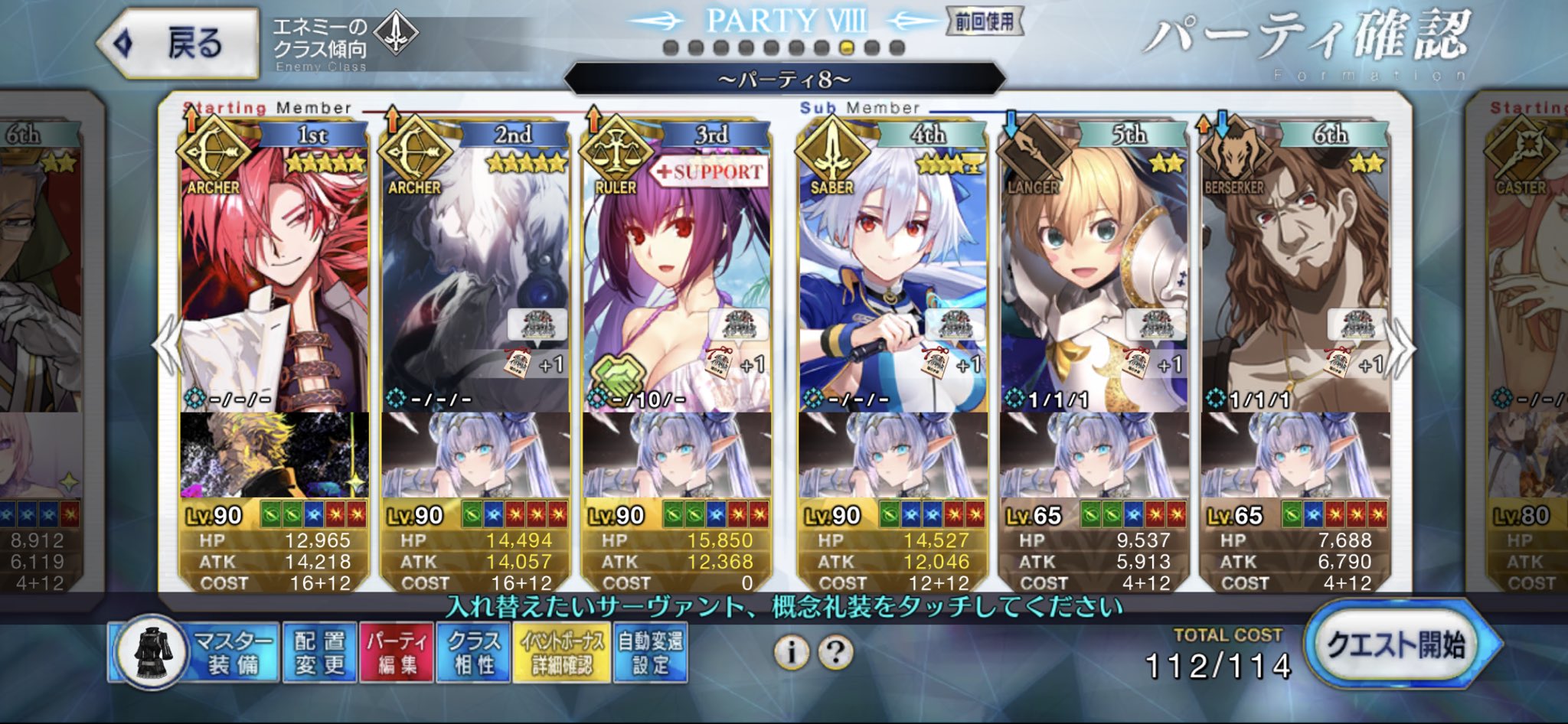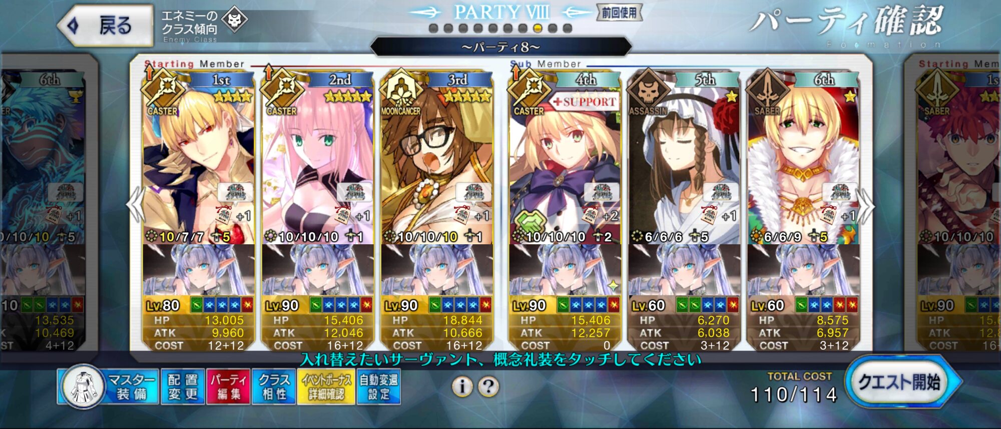 3wでちょっとだけNP足りないからマスター礼装で補助は必要90++6積みできたものの、素材が美味しくないので90+行きます。