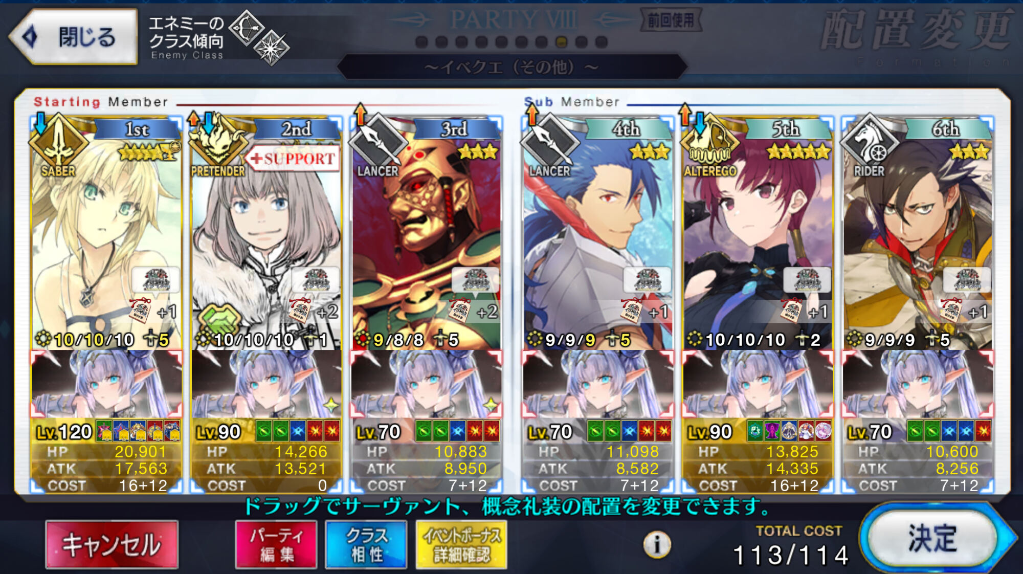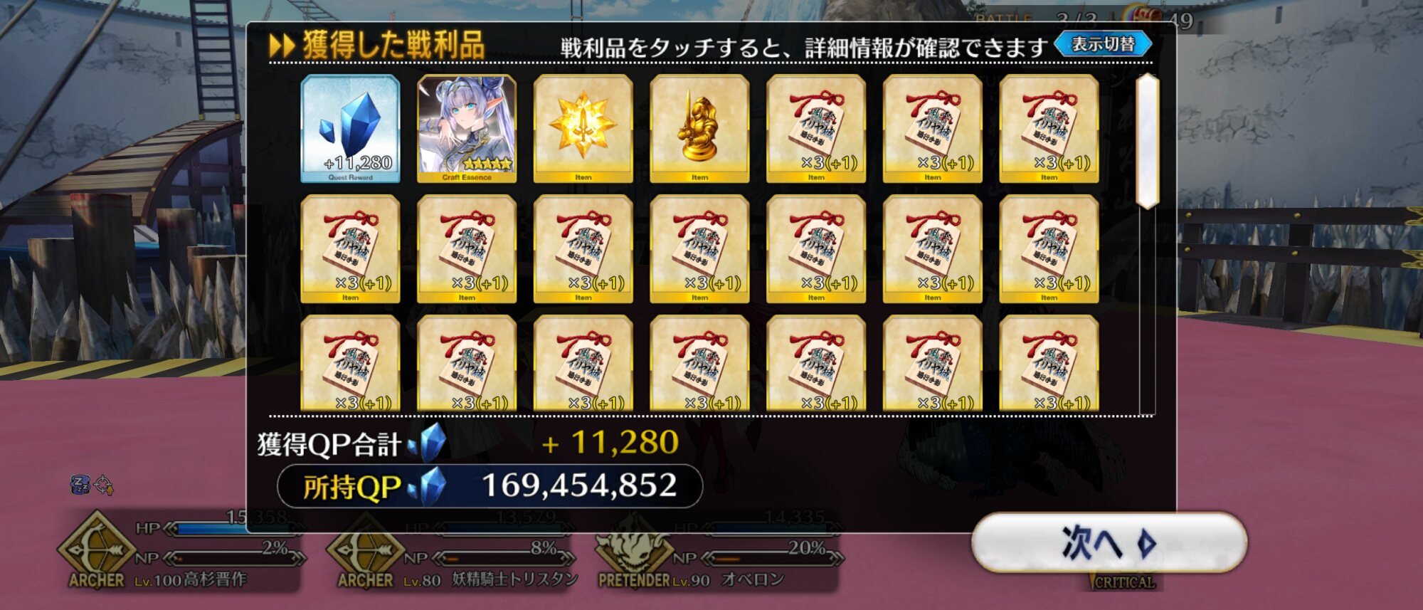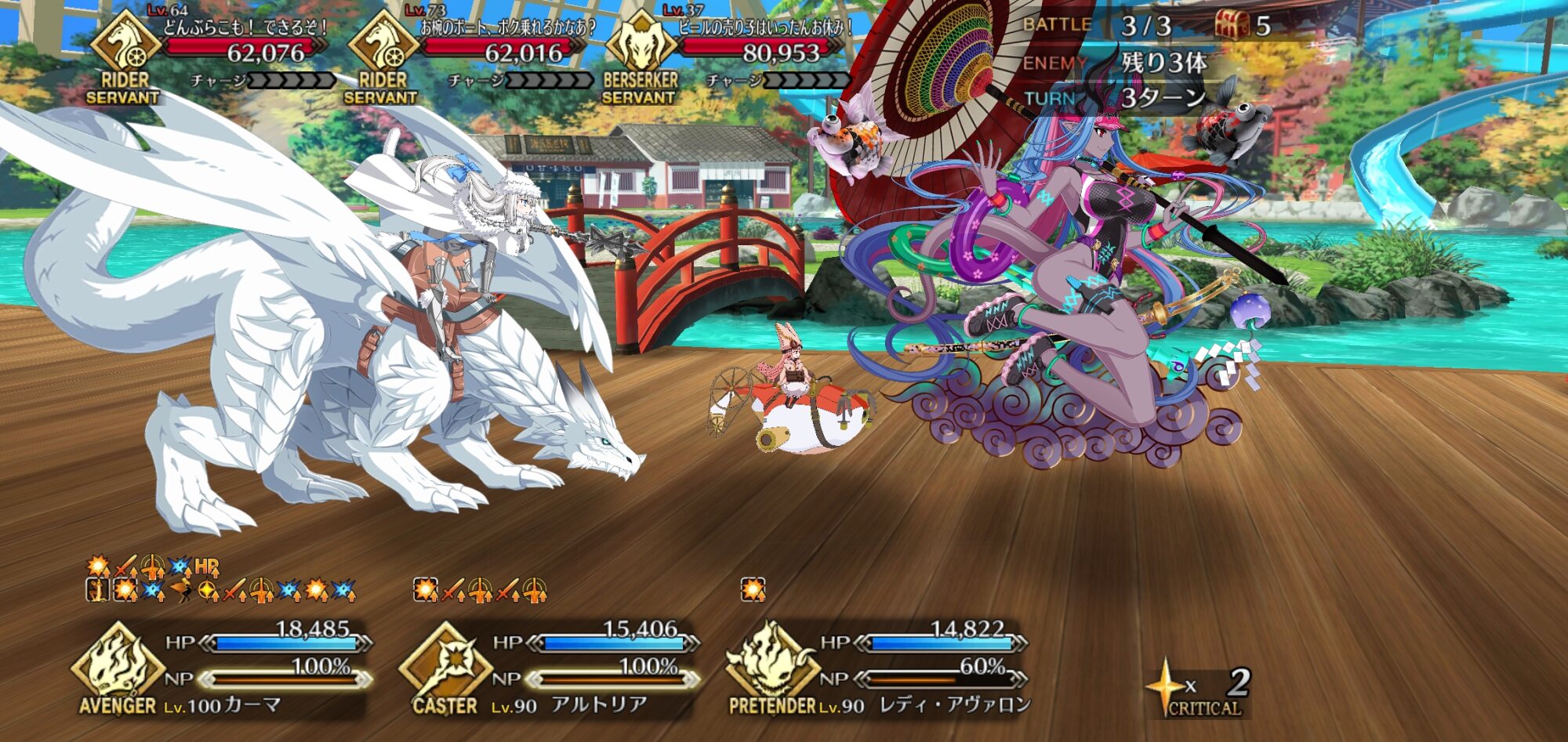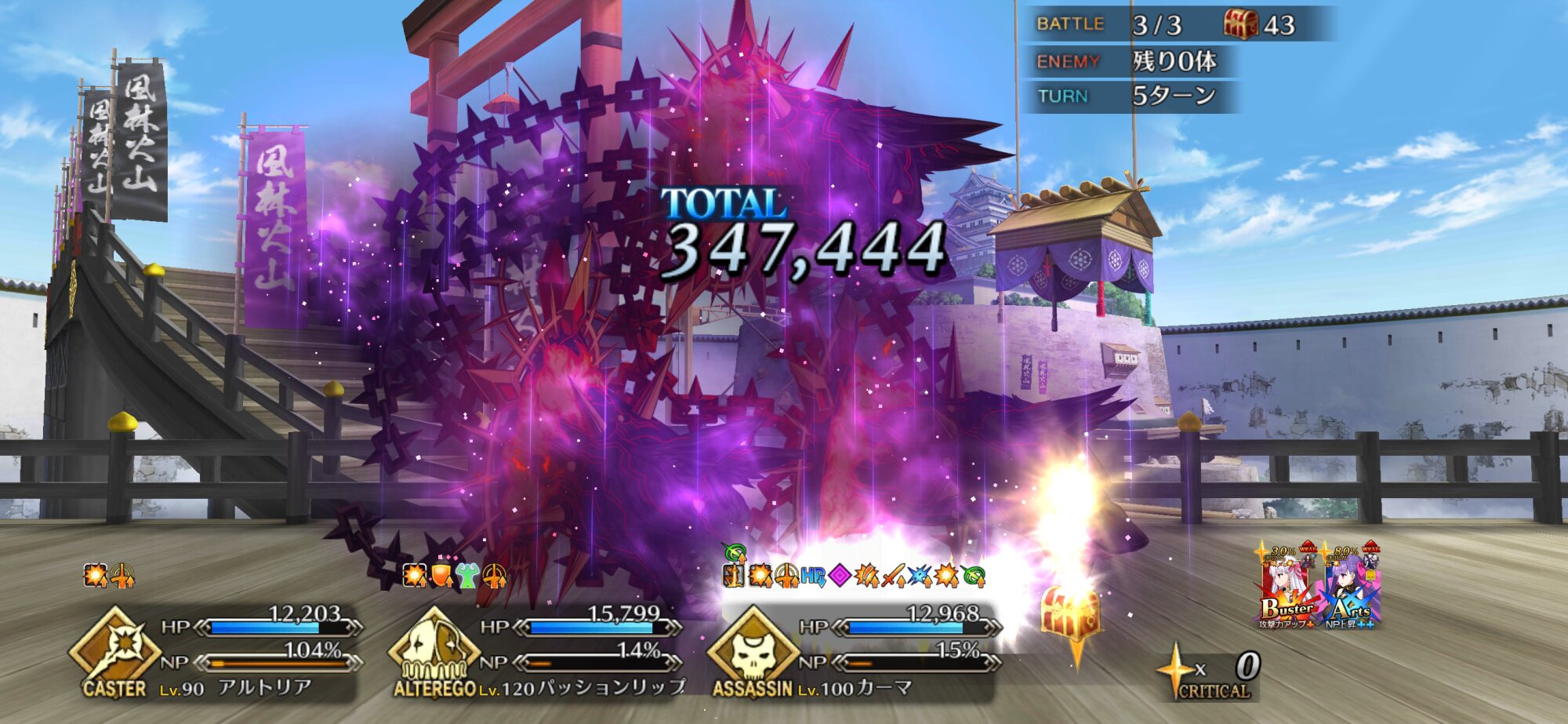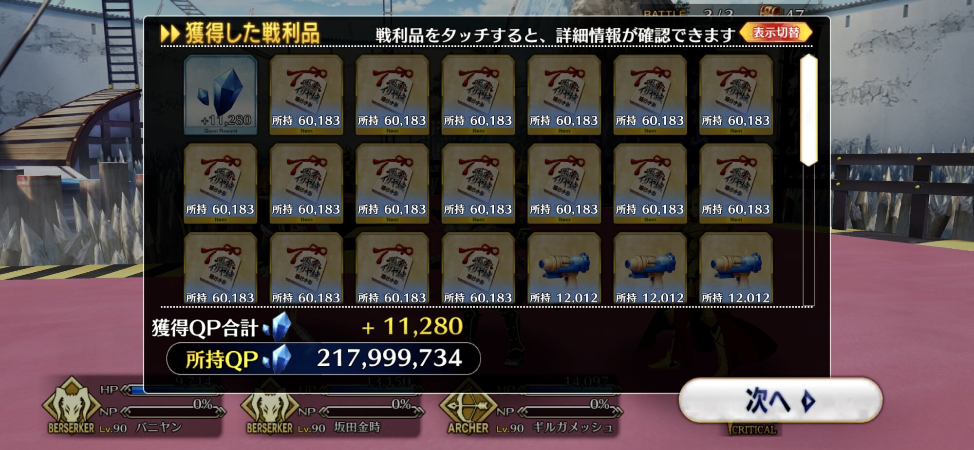 3wでちょっとだけNP足りないからマスター礼装で補助は必要90++6積みできたものの、素材が美味しくないので90+行きます。