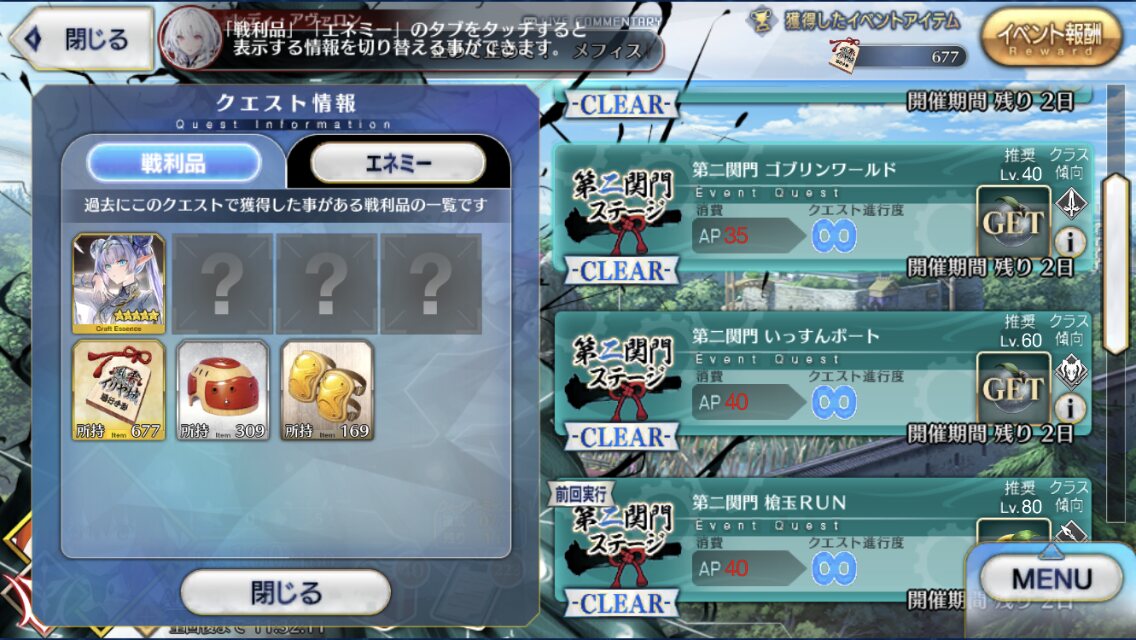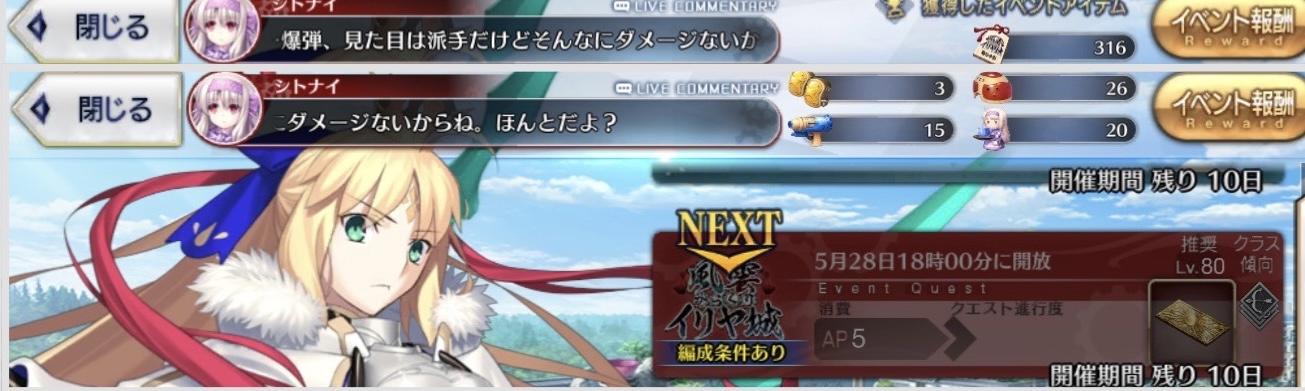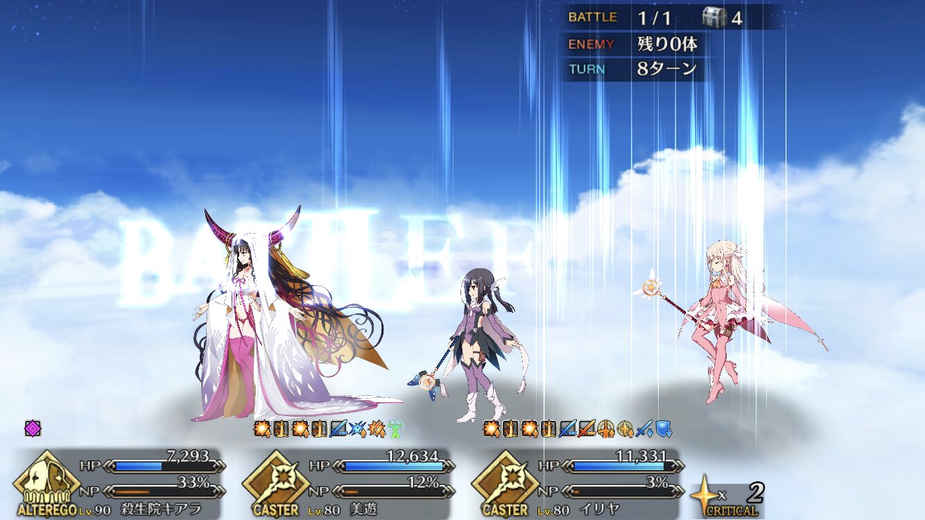 攻撃UP凸礼装イリヤと紫式部、キャストリアで安心して周ってるのを思うと前回は本当なんだったんだって難易度だったな