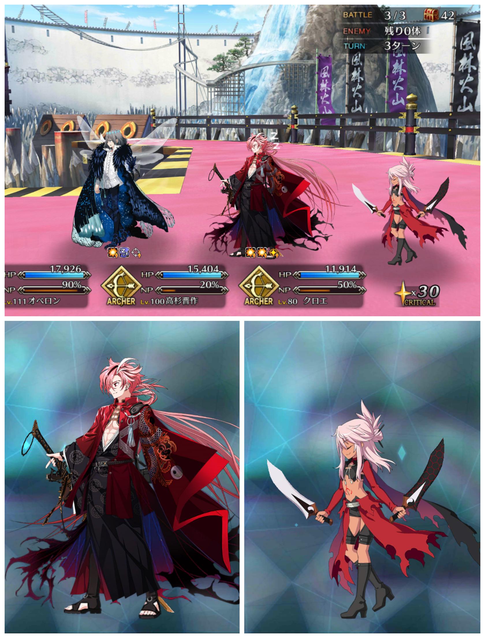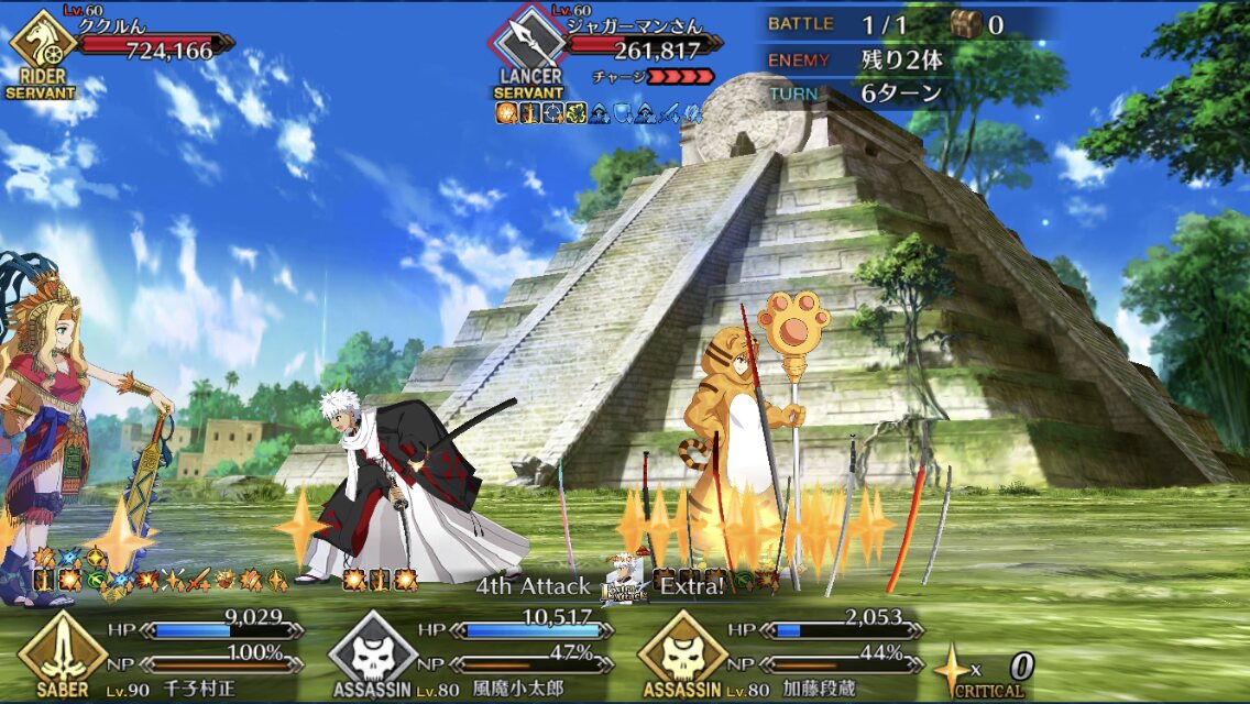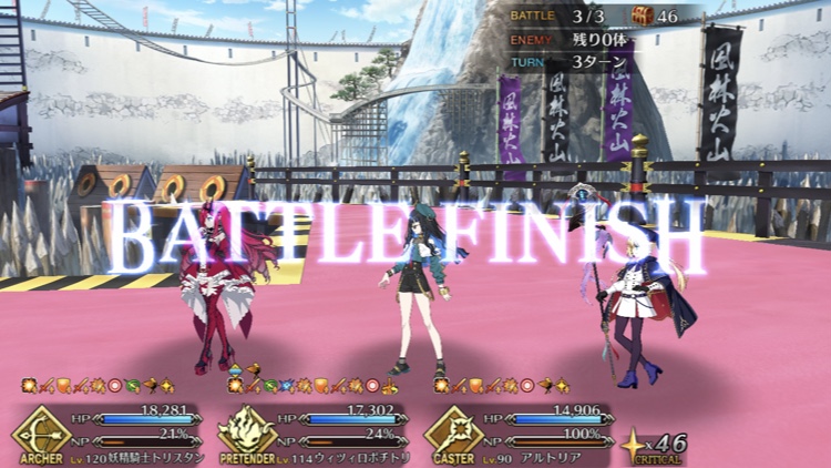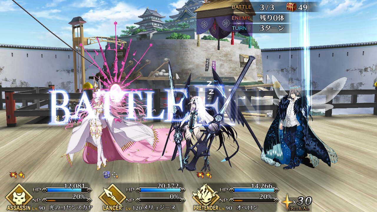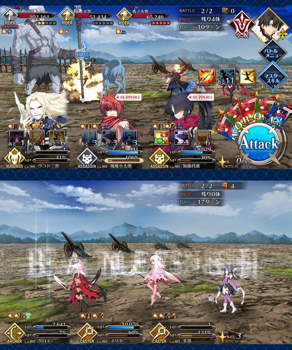 敵の格による攻撃順と攻撃回数をどこまで理解してるかのテストな感じもする90+は色々と試行錯誤した結果、w1オベロン、w2モルガン、w3ククルカンで宝具3連発で決まった。