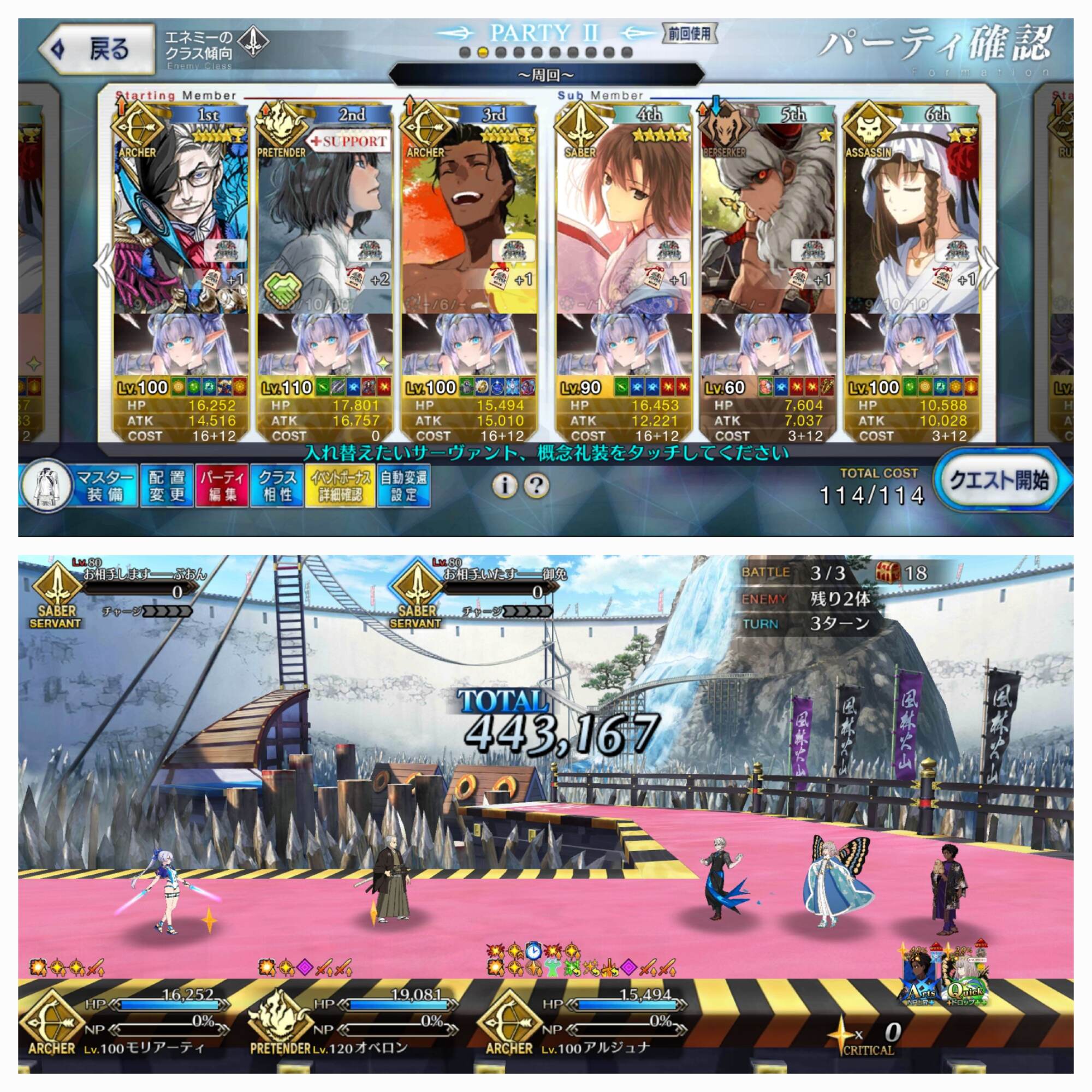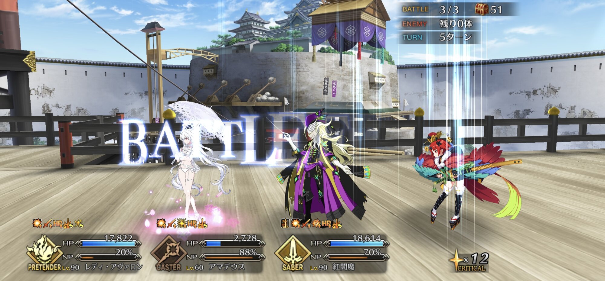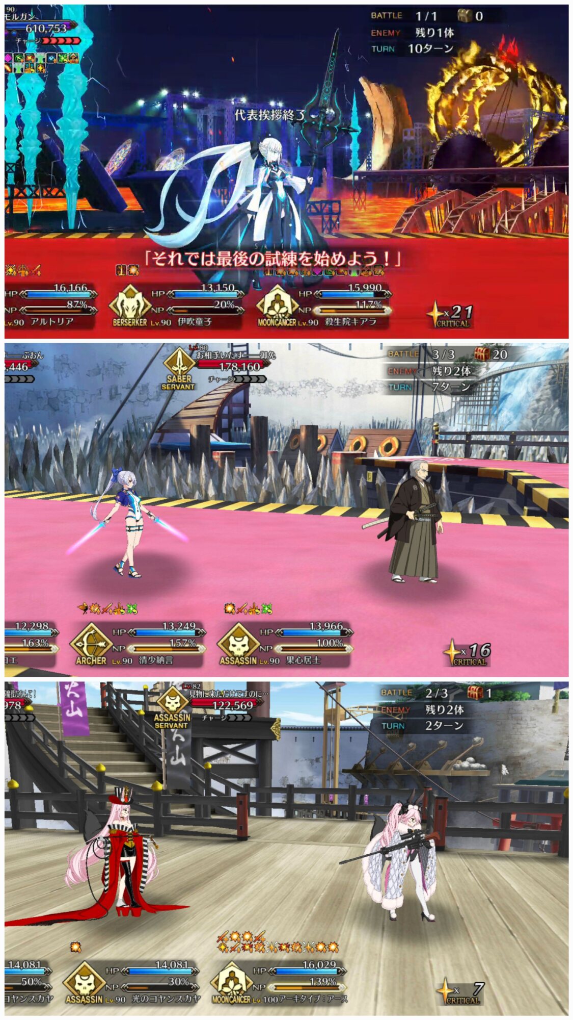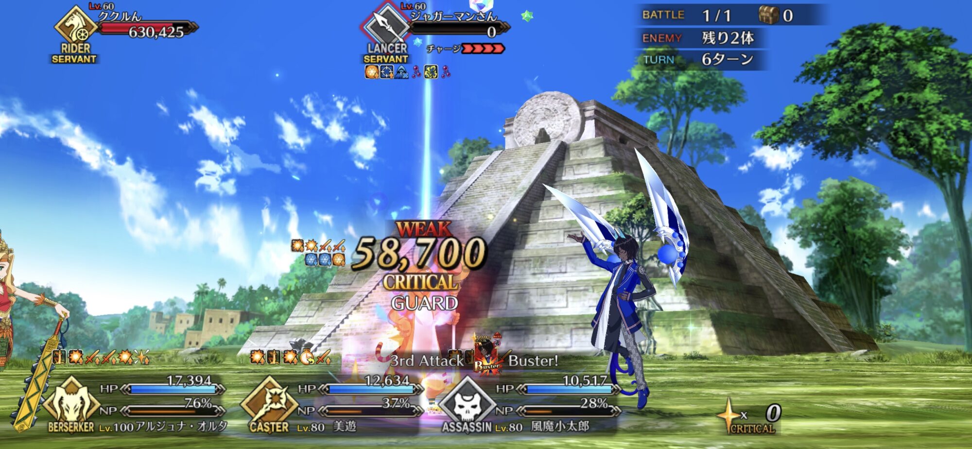 敵の格による攻撃順と攻撃回数をどこまで理解してるかのテストな感じもする90+は色々と試行錯誤した結果、w1オベロン、w2モルガン、w3ククルカンで宝具3連発で決まった。