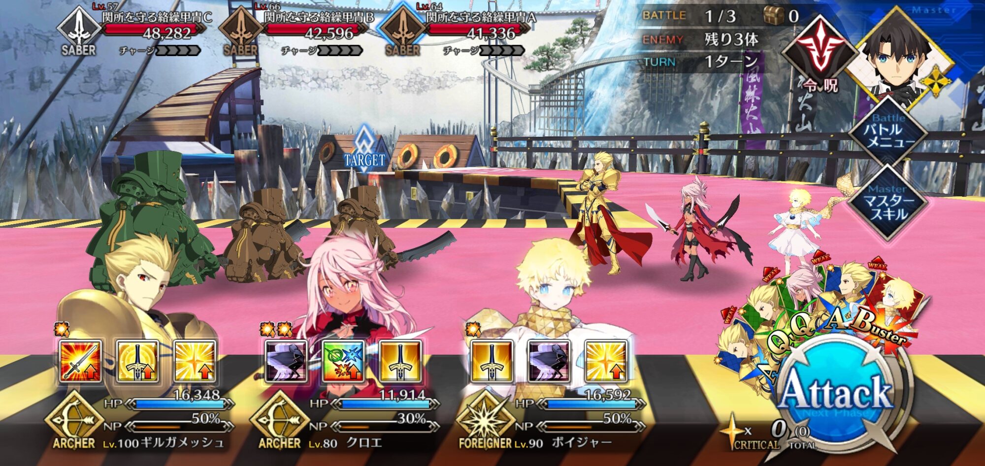 1wでキャストリアのS1を使ってトリア→ギルで宝具を撃つことで、以後の手順を固定化できました