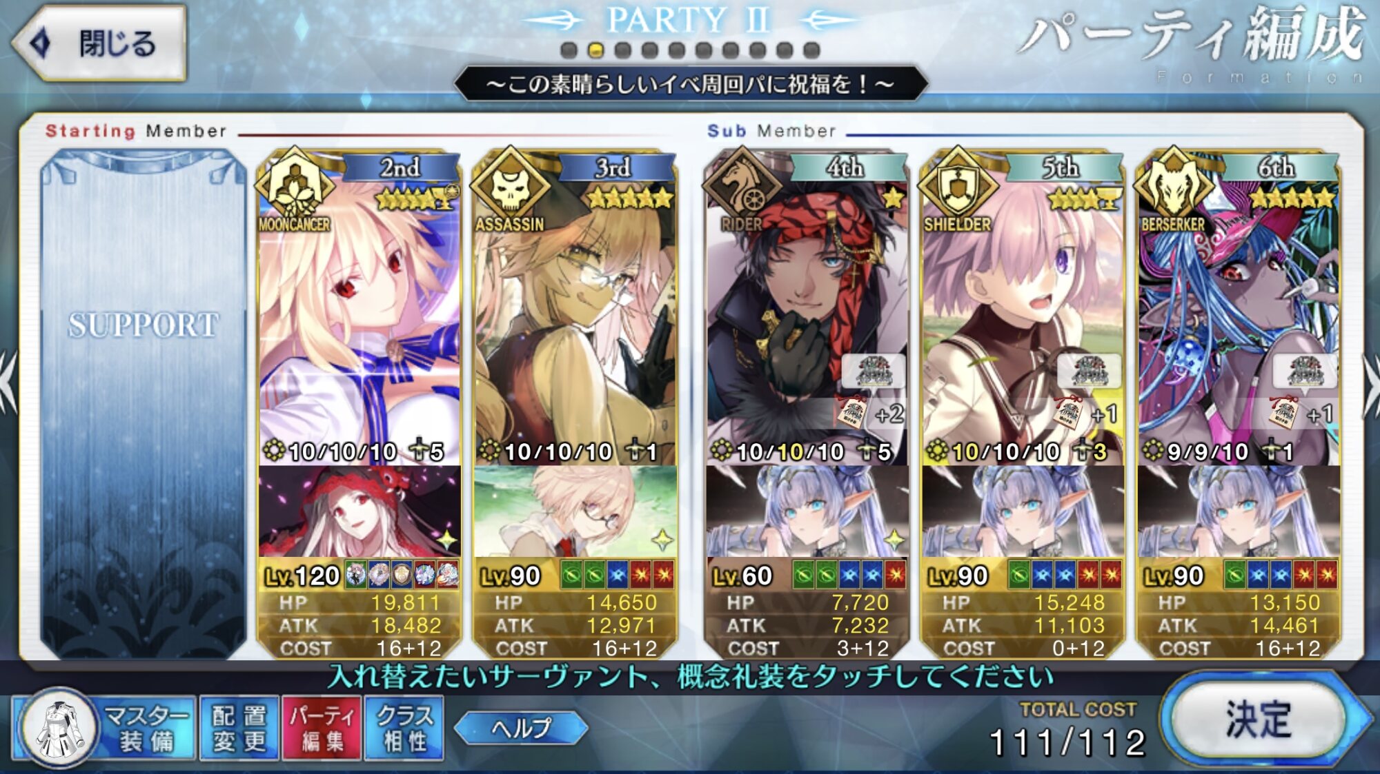 S1でNP配布と攻バフ、S3で天特攻を付与できるのが偉い今回のエキシビション短い時間でクリア出来るしあんまり頭使わなくても言われた通りにすれば結構楽しいから個人的にはちょうどいいと思うなとなってます