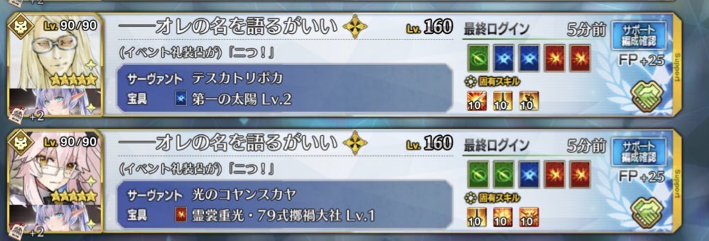 凸特攻礼装付けた自前のイベ特攻アサシンで殴り倒しちゃうのが一番楽だったな>>946