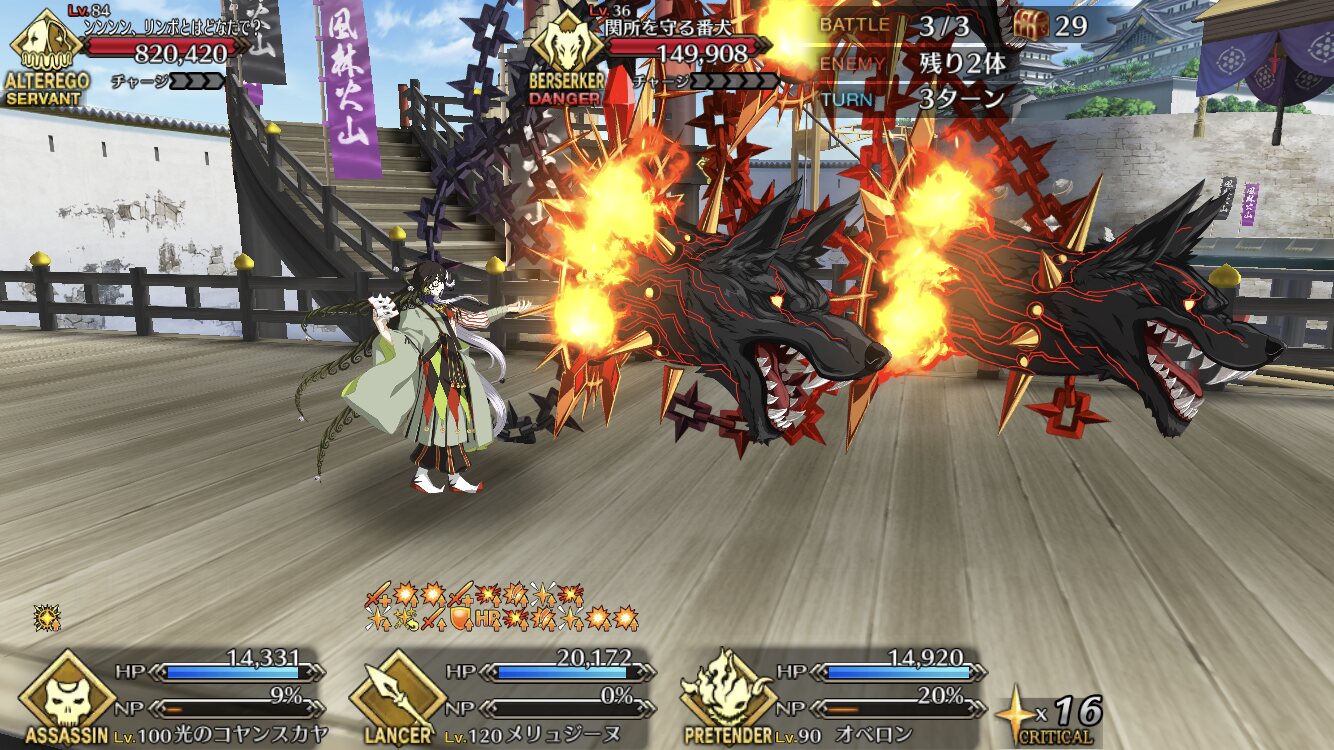 オダチェン解禁するしかないのか…礼装フリーでシステム組めるB宝具のサーヴァントは火力さえ足りれば敵の数とか関係なくどこでも回れるのやっぱり偉いね