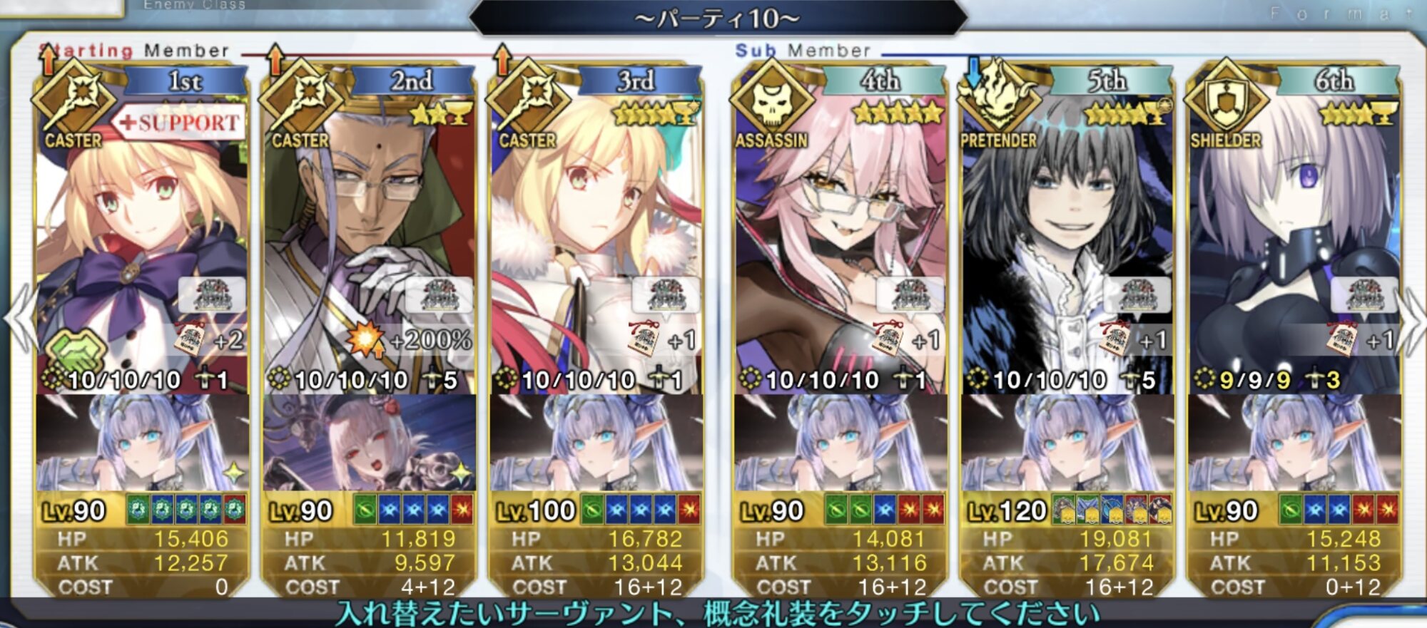 キャストリアとギルに宝具威力UPのコマコ付けて火力補強して