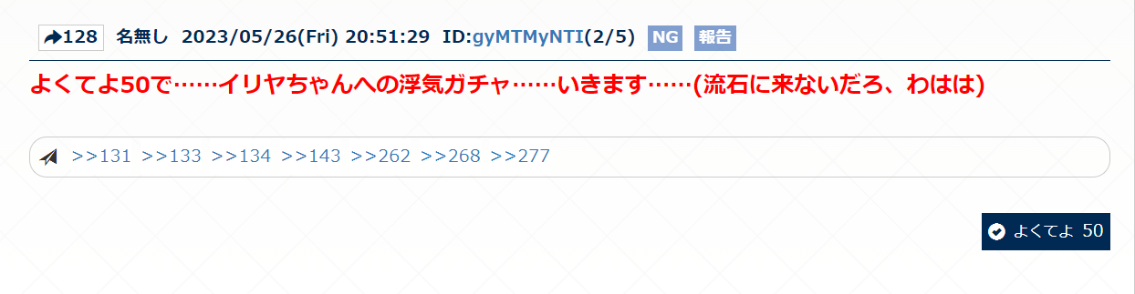 よくてよ無しのガチャ報告は以下のスレへ