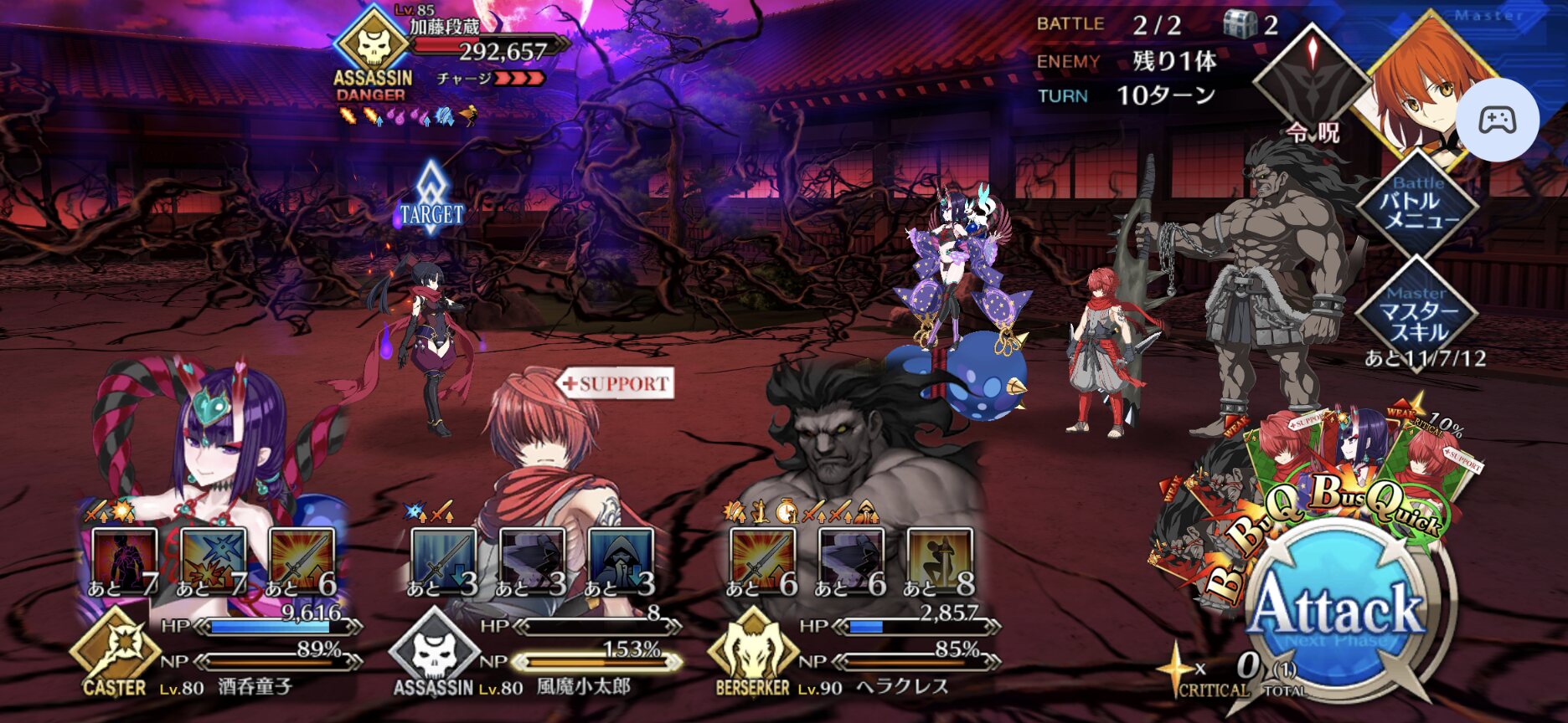 段蔵は人妻??ではないからギリOUTか??箱イベで普段使っていない鯖を一臨MAXまででも良いから上げておけば後の攻略が楽になったりするから助かる。