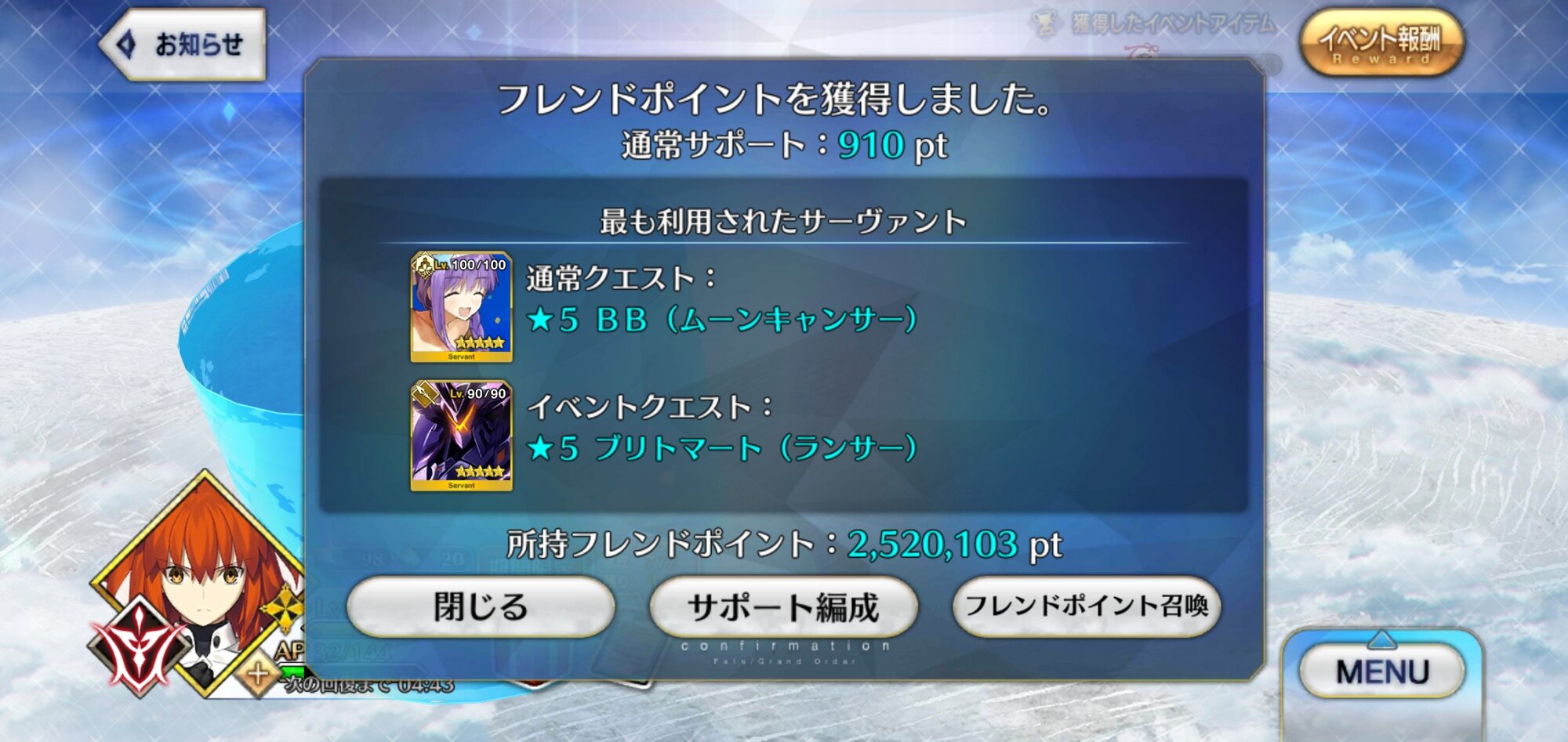 bbbbbさて新フリクエやるかとFGO開いたがリンゴもAPも無かった(アホ)
