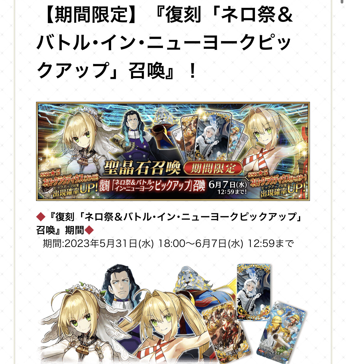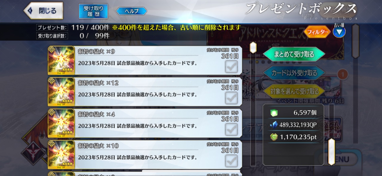 それと礼装更新まで10分切ったので交換しきれてない方は早めに交換しに行くのよー