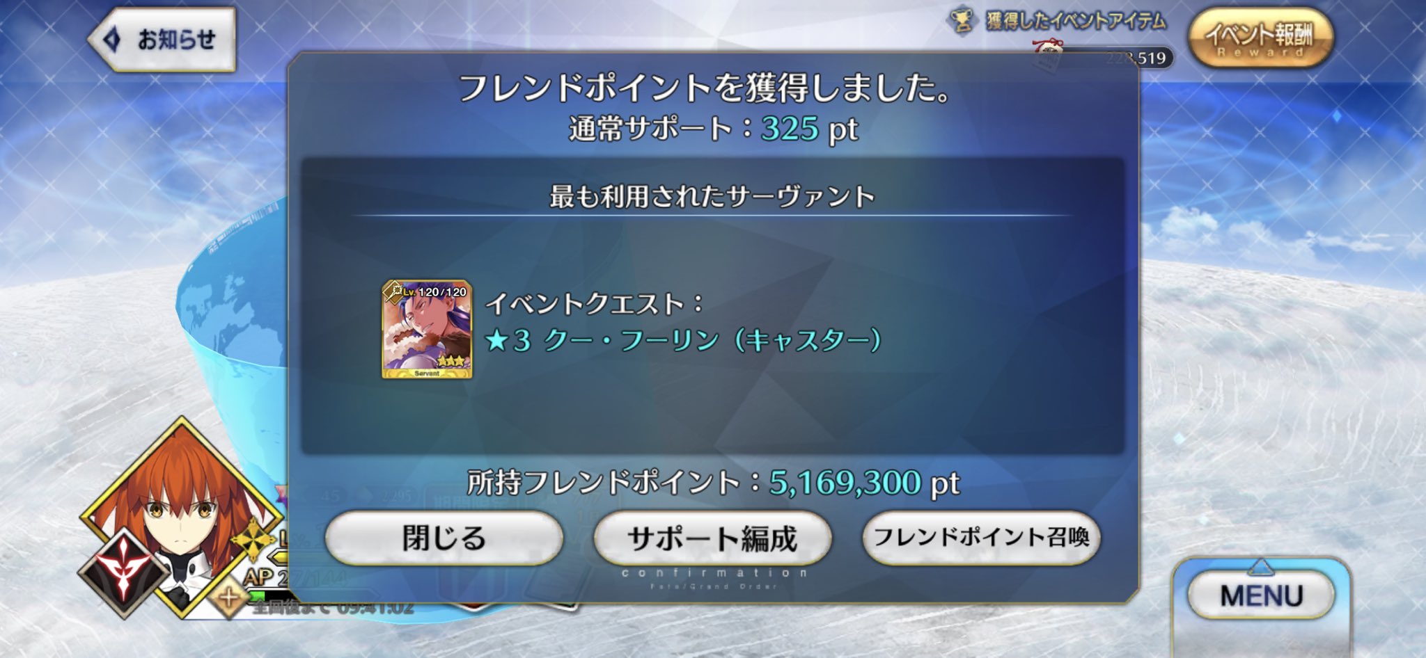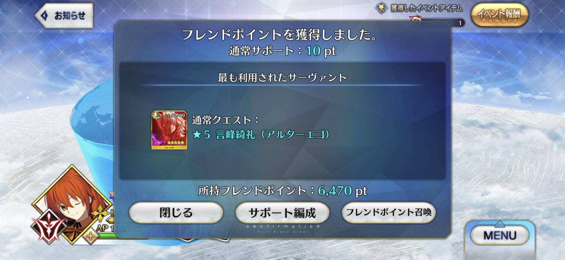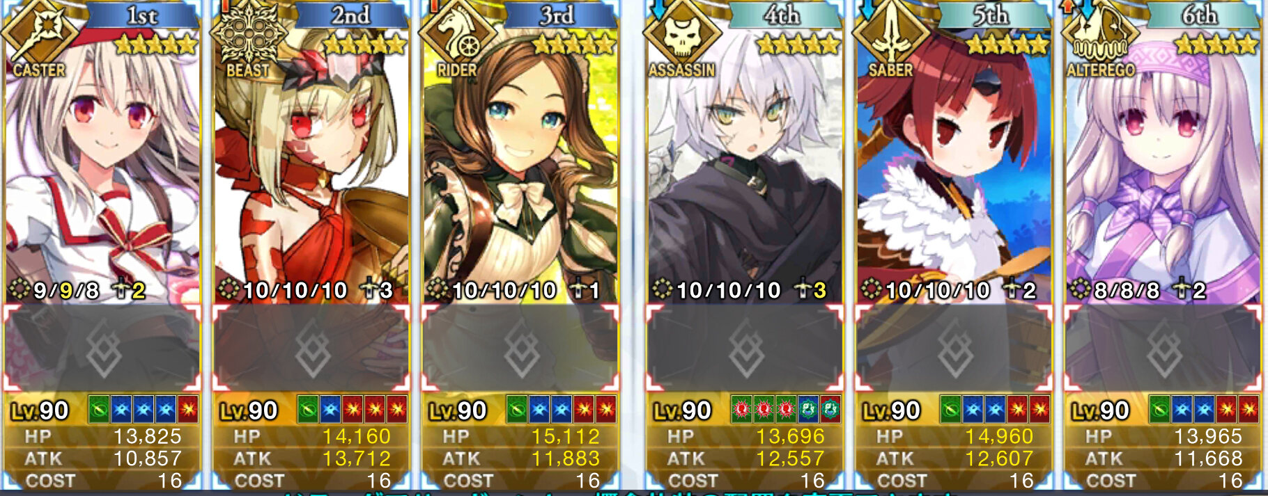ここまで至るにはサポーターとか礼装めっちゃ色々取り揃えてコインとか宝具レベルとかも頑張って、何より面倒な戦い方も楽しめるようにならないといけないけどねHAHAHA>>106