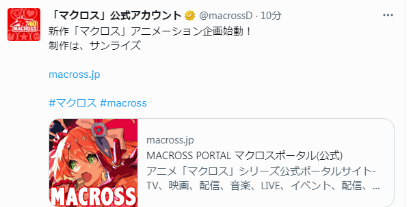 現地組と公式Twitterで明かされたが、マクロス新作はサテライトじゃなくサンライズ!?
