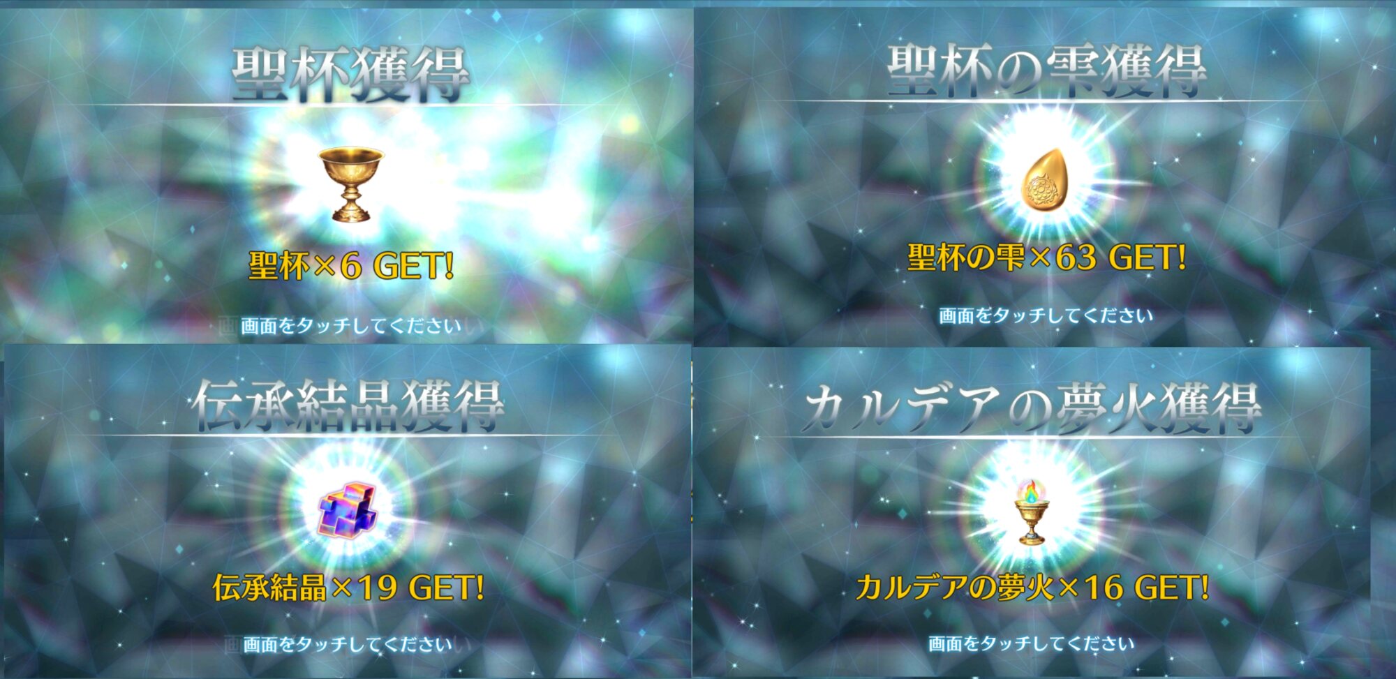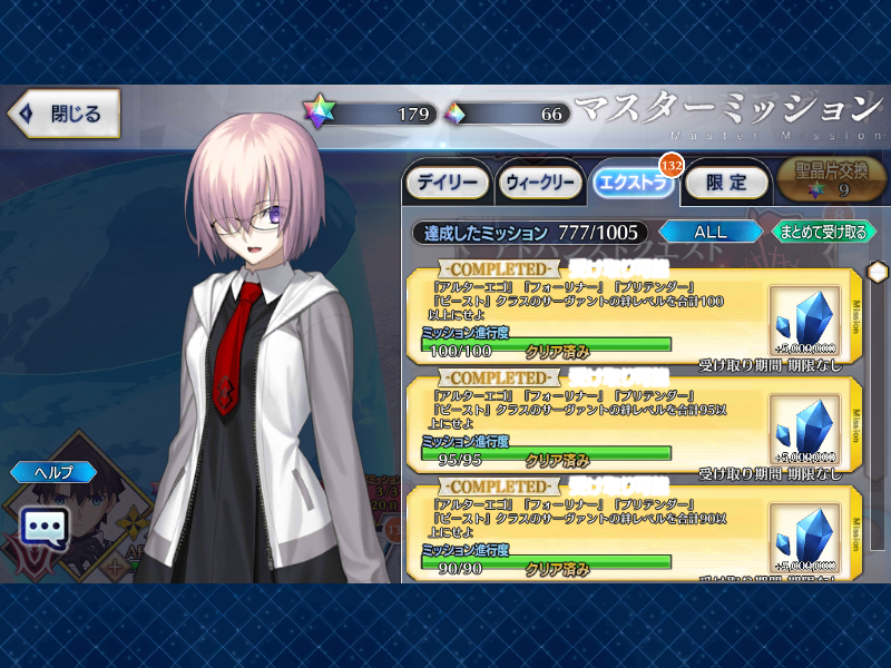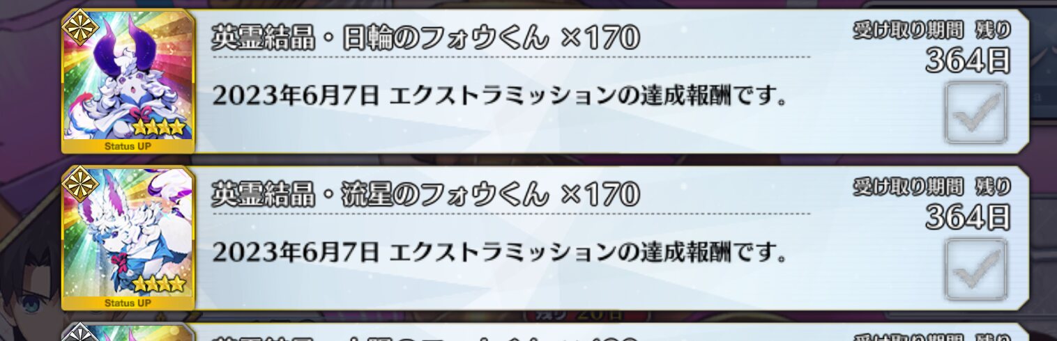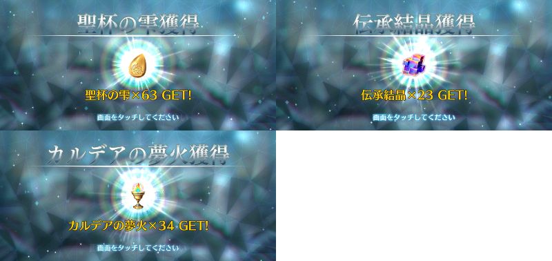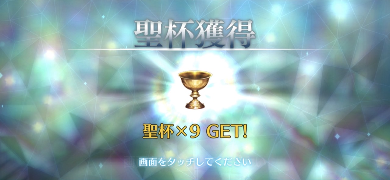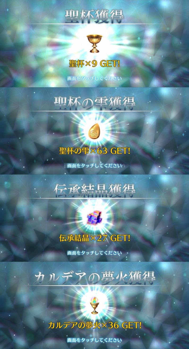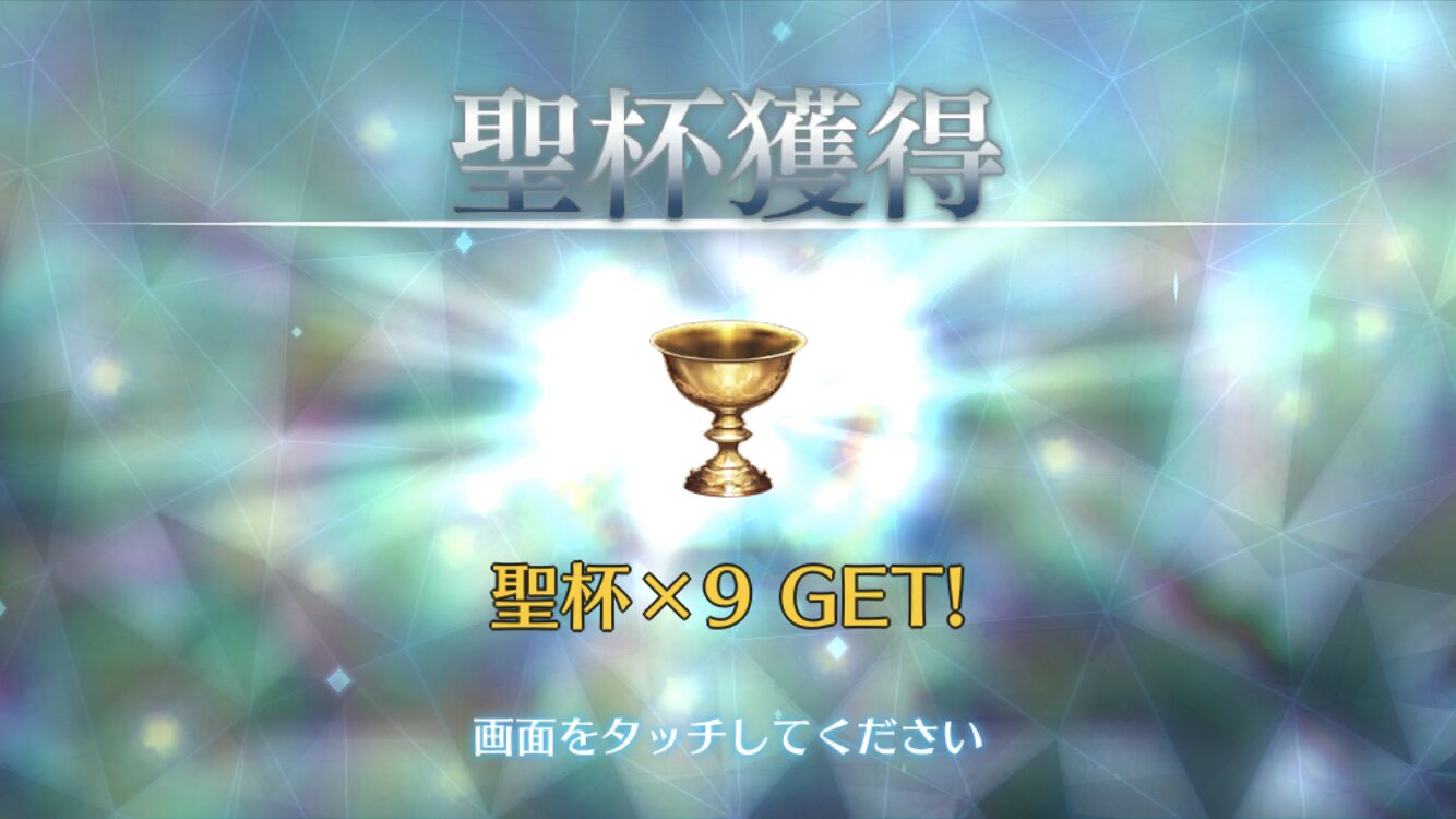 俺は石の数の方にビックリだよ聖杯9個と滴63個も貰っただが