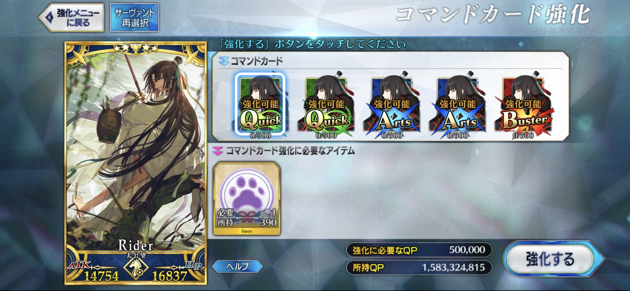 星4フォウくんも一杯入手できちゃって、足跡と一緒に推し鯖に注いでるけどQPの方が先に枯渇しそうでござる(´・ω・`)