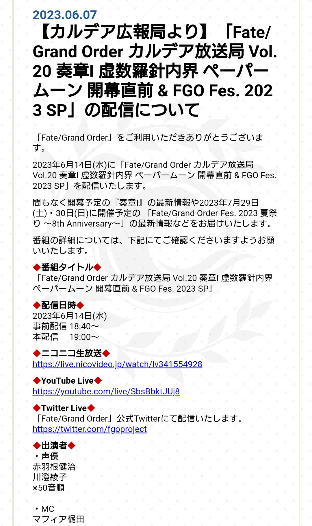 FGO公式HP http://www.fate-go.jpキアラなら大丈夫