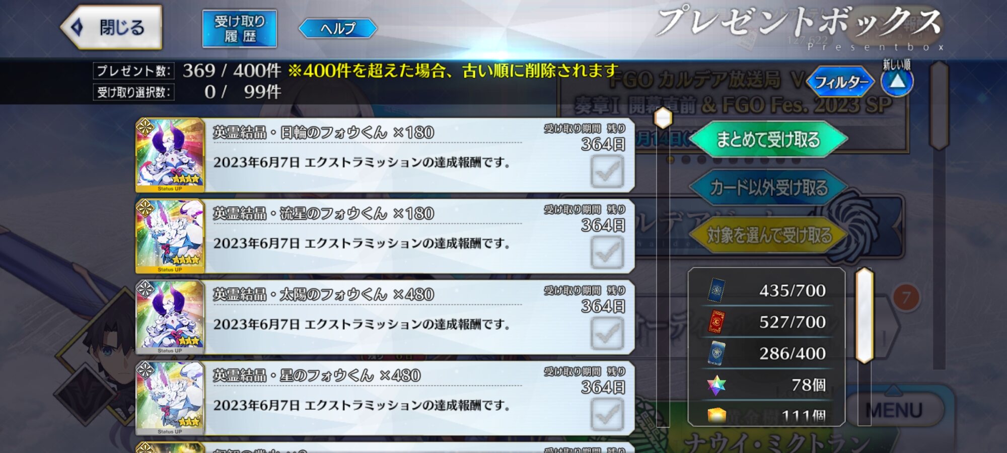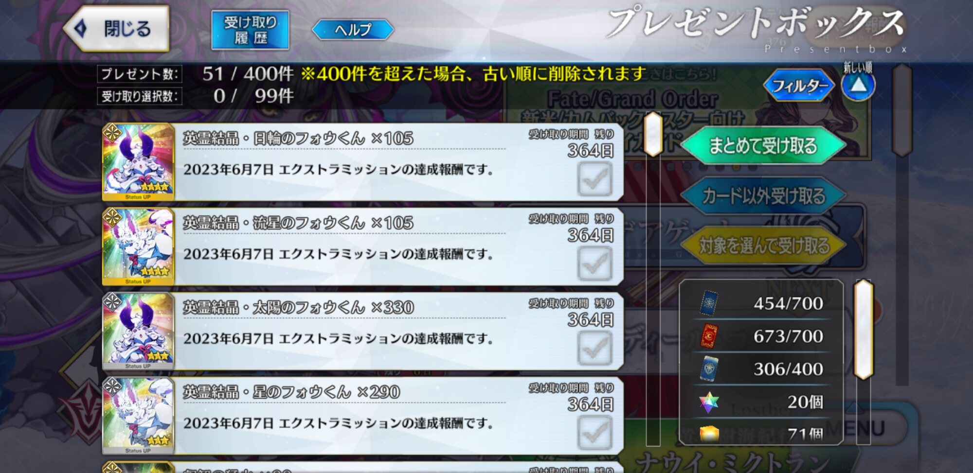 ・・・!?(石の数を二度見)受け取り画面が重い...