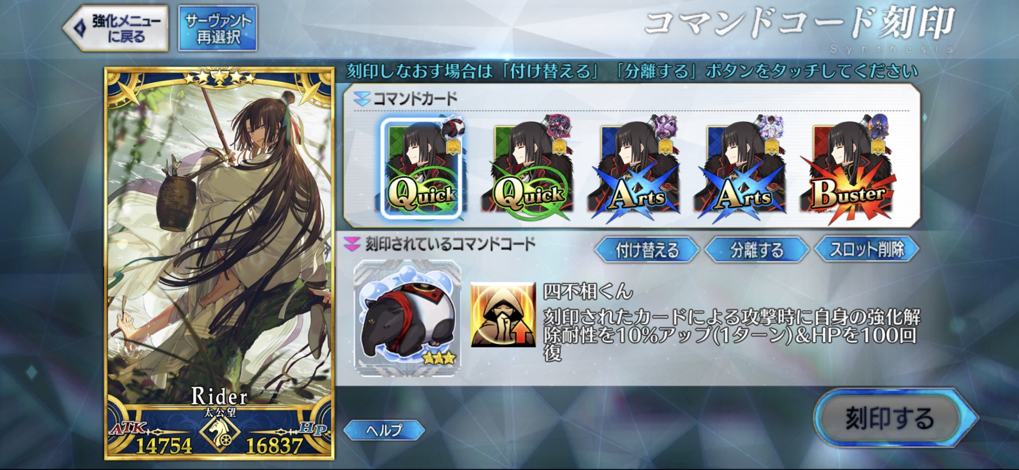 まさかこんな形で実装されるとは思ってなかったし、ちょくちょくやるあのやべえ顔でインパクトも十分だが、それがなければ普通にいい女だと思えるが、あれがあってもいい女だよ宝具を実戦で使えたことは一度もない、というか俺の頭じゃ使いこなせない