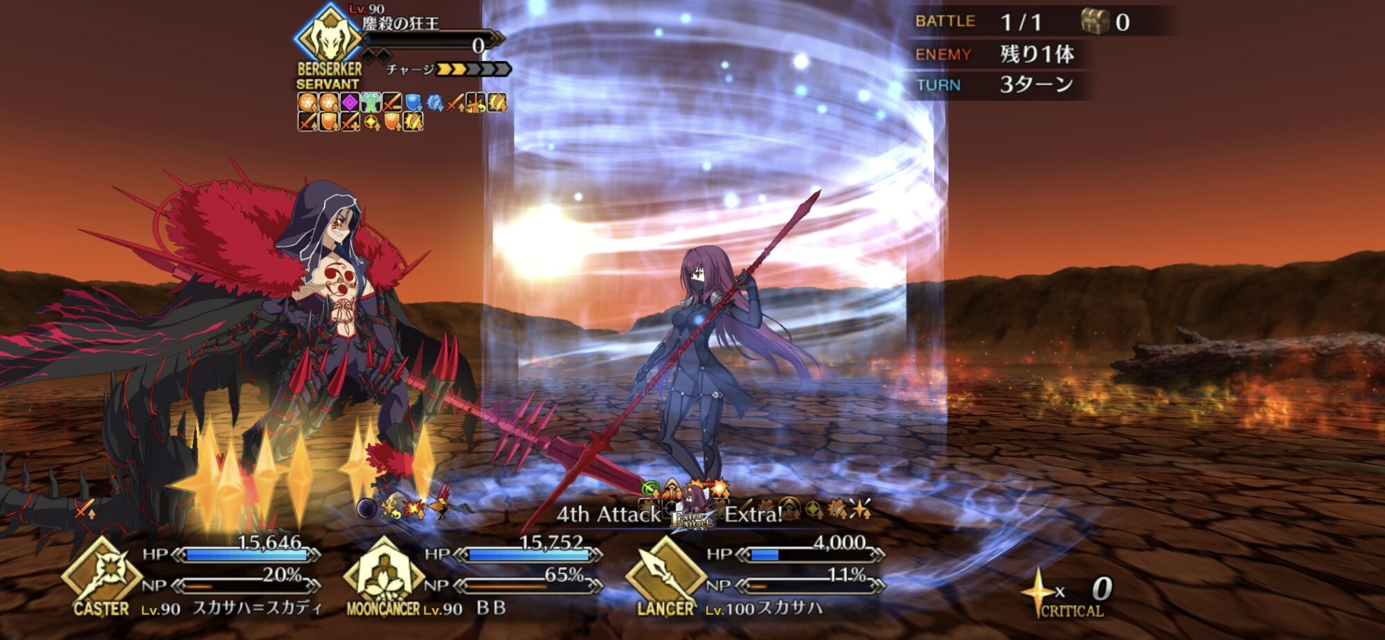 うん、水着スカディ様と組み合わせて1wave宝具ぶっぱで星出し、2waveスターを使ってクリ殴り、うまくスキル1がはまれば3waveでもう一度宝具ぶっぱ出来る。