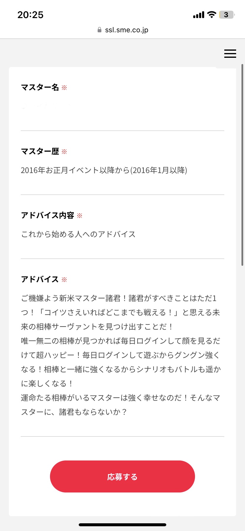 駒姫様は他の二人と違ってカルデアを壊滅状態へ追い込んだり特定のサーヴァントを傀儡にして弄んだりもしていないから、ポーズが似てただけで十把一絡げにされてたら完全なイジメですね…そういえば明日メンテなんですね