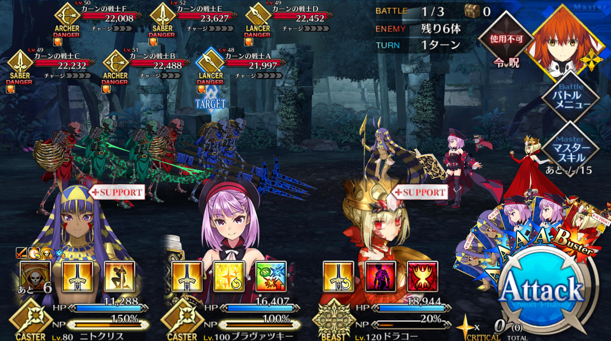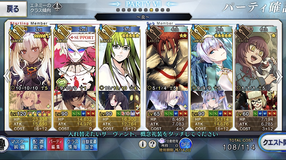 メインじゃないけど90+だか90++のライダーを不夜キャスさんでしばいている方がいましたねハベにゃんやキャスニキなど自スキルでNP相当量チャージ可能なのが居ると道中楽になって難易度が相当下がる