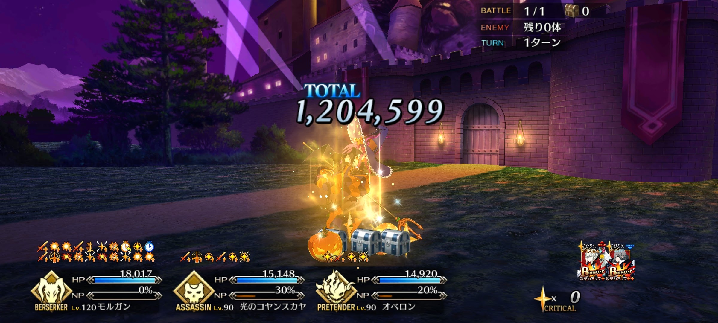 結果、約33万……まあ初手でのクリ殴りとしてはそこそこ悪くないダメージ出たんじゃないかなって、流石に攻撃宝具には敵いそうもないけどモリガンのコスプレをしたモルガン
