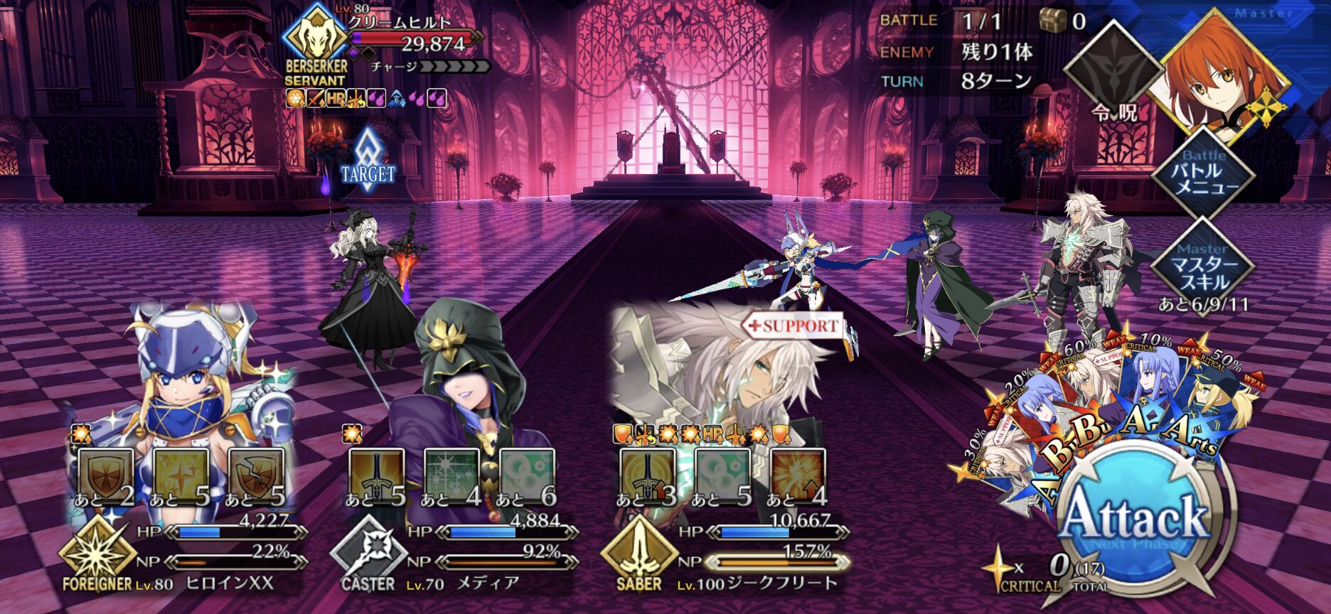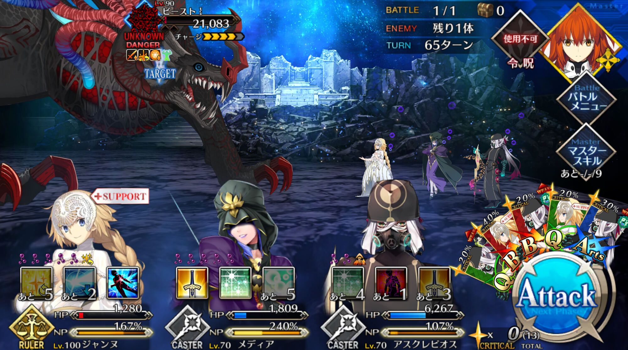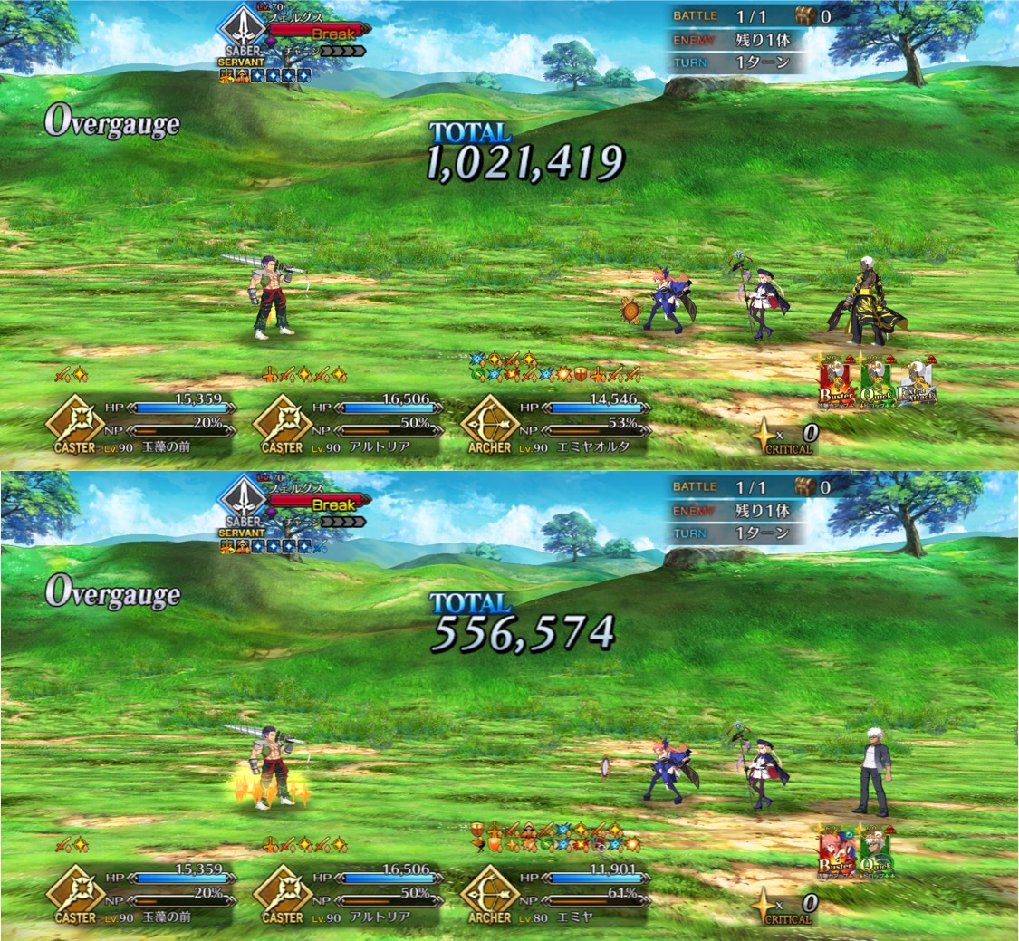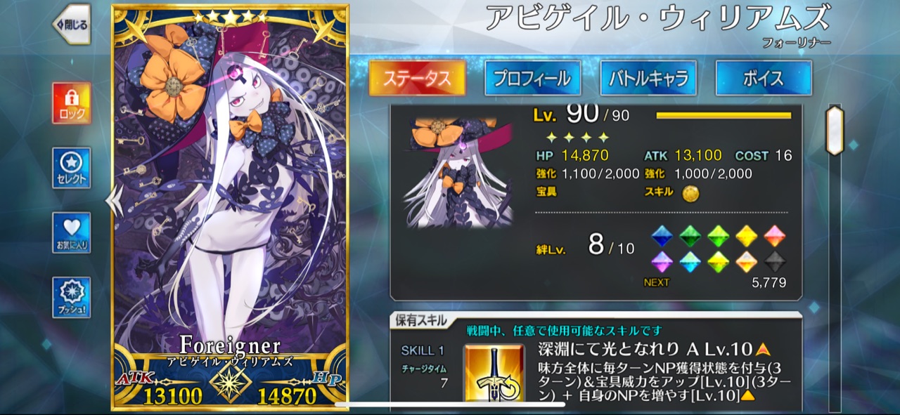 オルガマリー(所長のすがた)通常アビーのAはクリ有りでもnp回収と威力が虚しくなる。基本運用はスキルでのバフ・デバフ、宝具でのバフ剥がし、A3枚によるAチェイン貢献でやってます。フォーリナーパだとXXと北斎のお供として強い