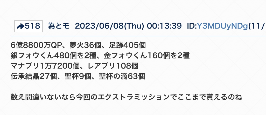 聖杯鋳造用に60万ptとか使ってるとリリィかハベ計3騎ぐらい出る感覚