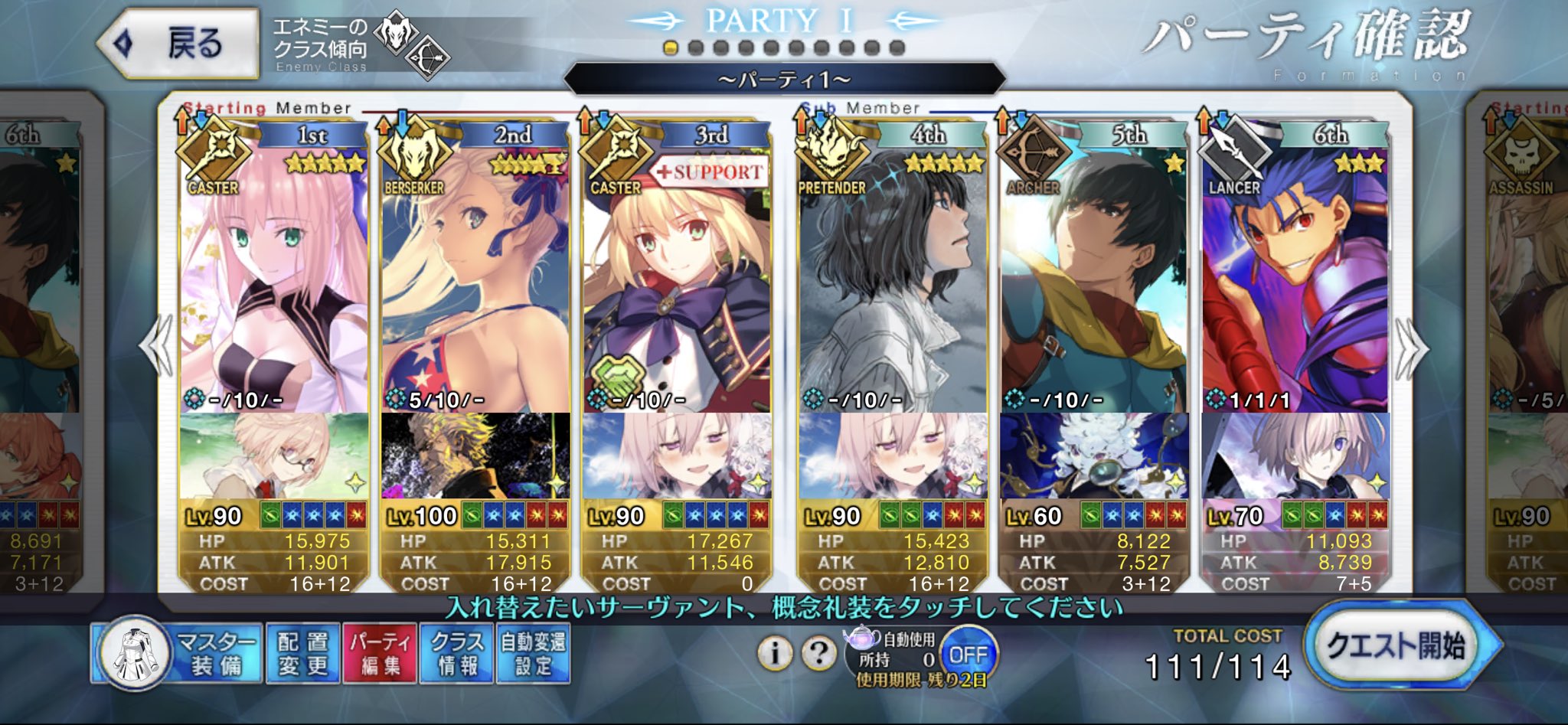 NP回収量的には、自前チャージもありやでキャストリアサンドかーHAHAHA