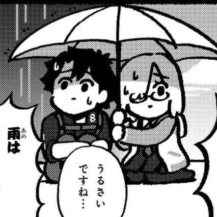 『屋外にてトラマカスキが傘を持っていない、かつ傍に私しかおらず私が偶然傘を持っている状況で、雨が降ります。相合傘の完成です、ね?』>>898