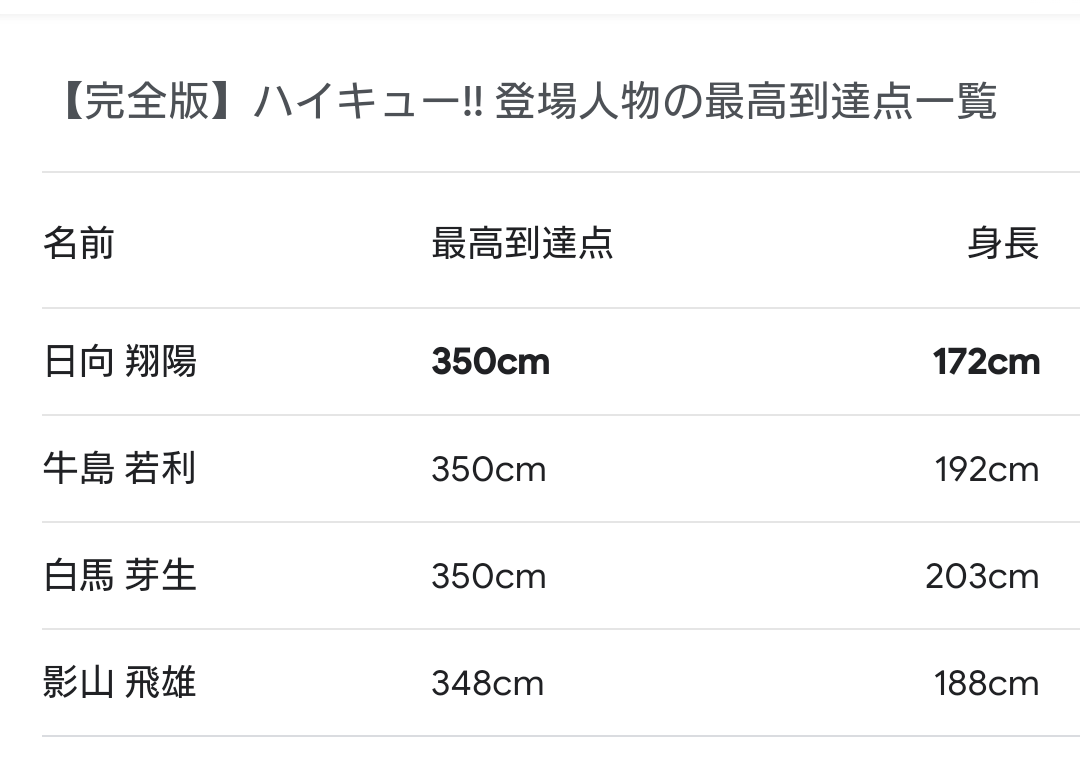 というか、星海も日向も最高到達点がヤバイよな。バレーボール経験者の知人が日向も充分天才と言ってた気持ちわかる。>>68