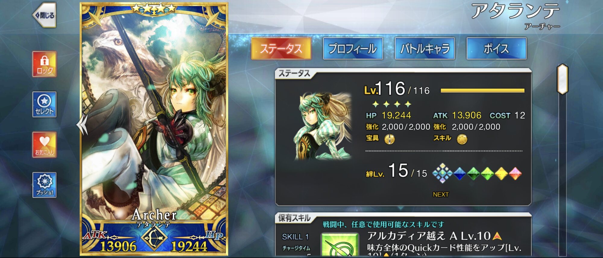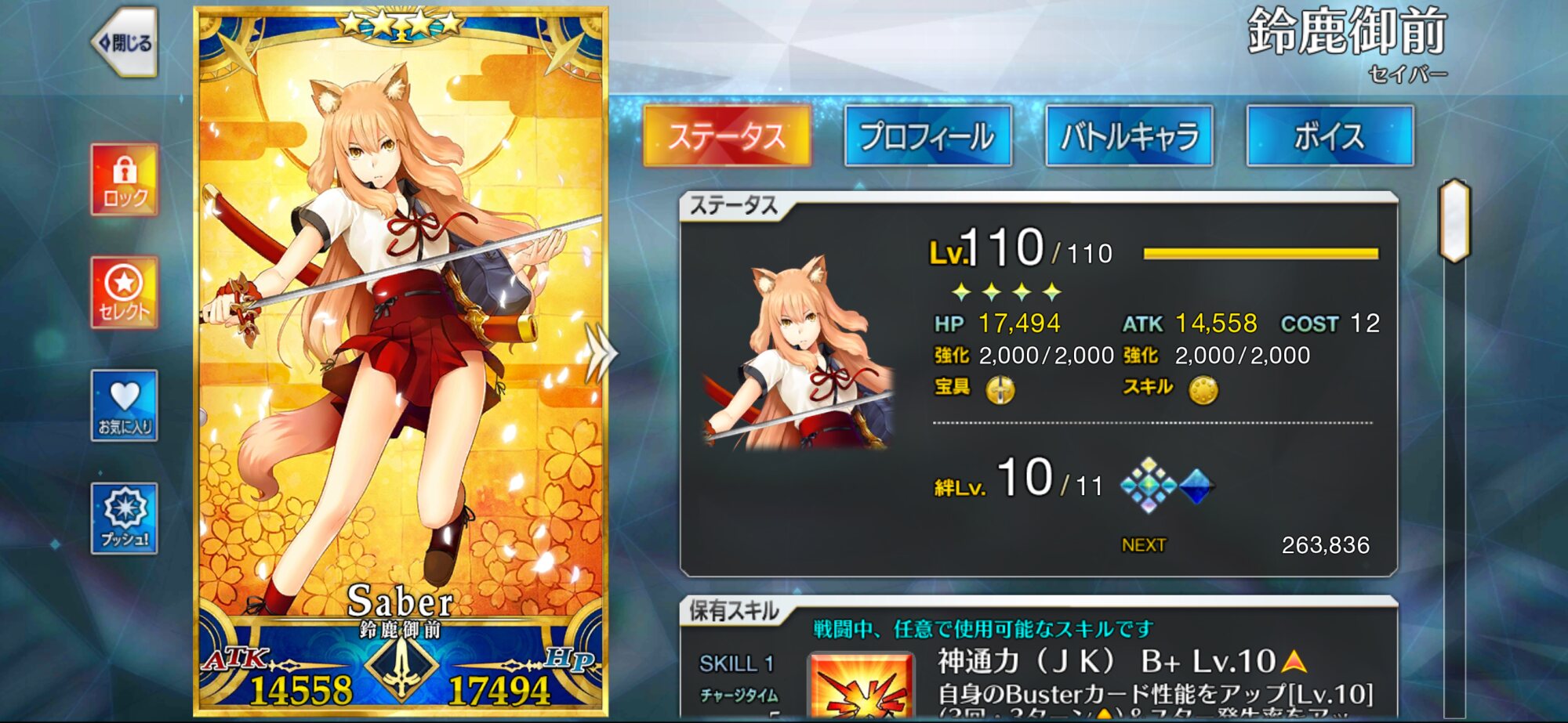 友「宝具が単純にえっちって自白してるじゃねーか騙されんぞ!」周年でレベル上限解放されるかな。推しをもっともっと強化したい