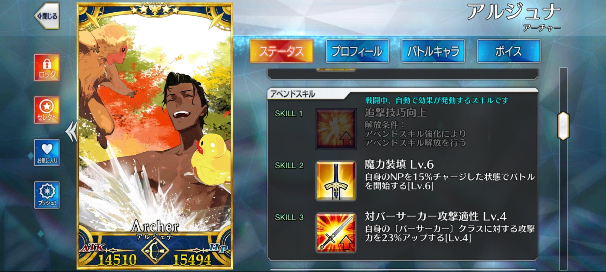 一応アルジュナ自体はスキルマにするぐらい育ててるぜ!