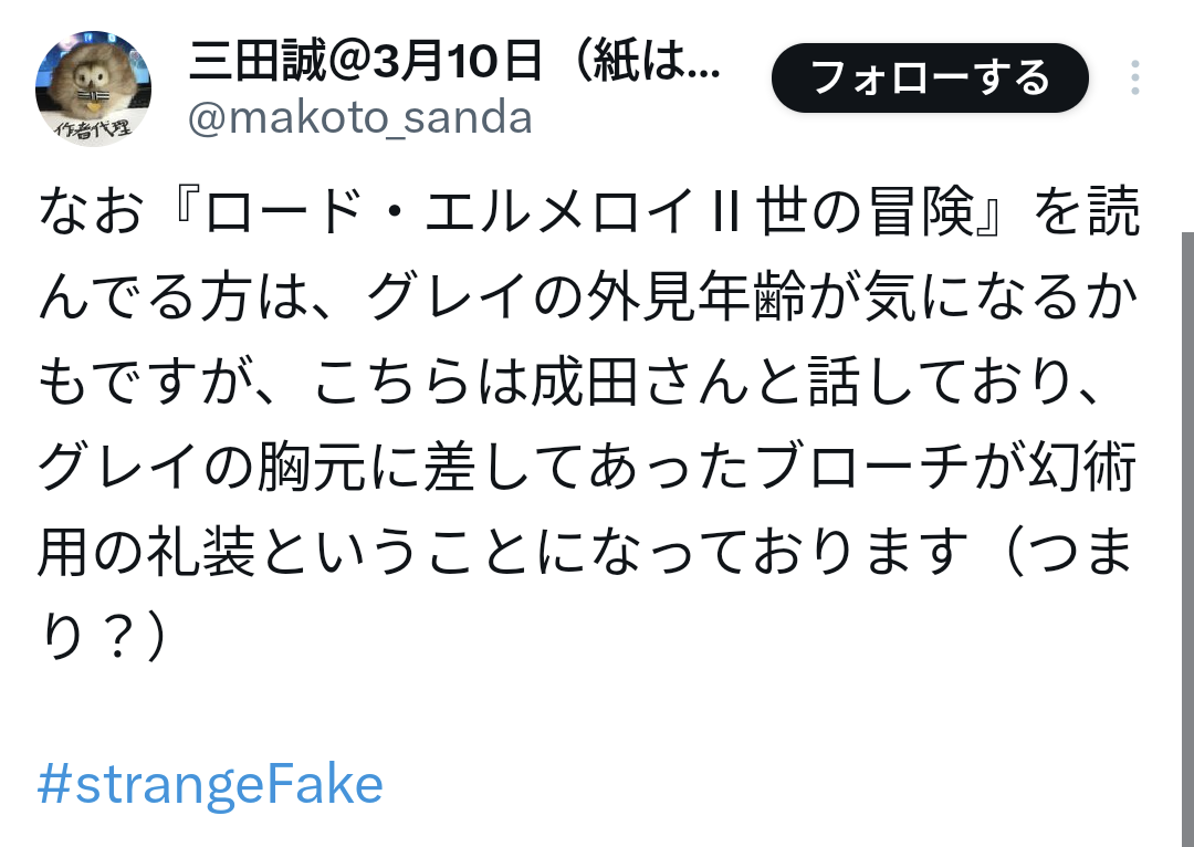 グレイ、ブローチあるなぁと思ったら……なるほどね(三田さんのツイート)